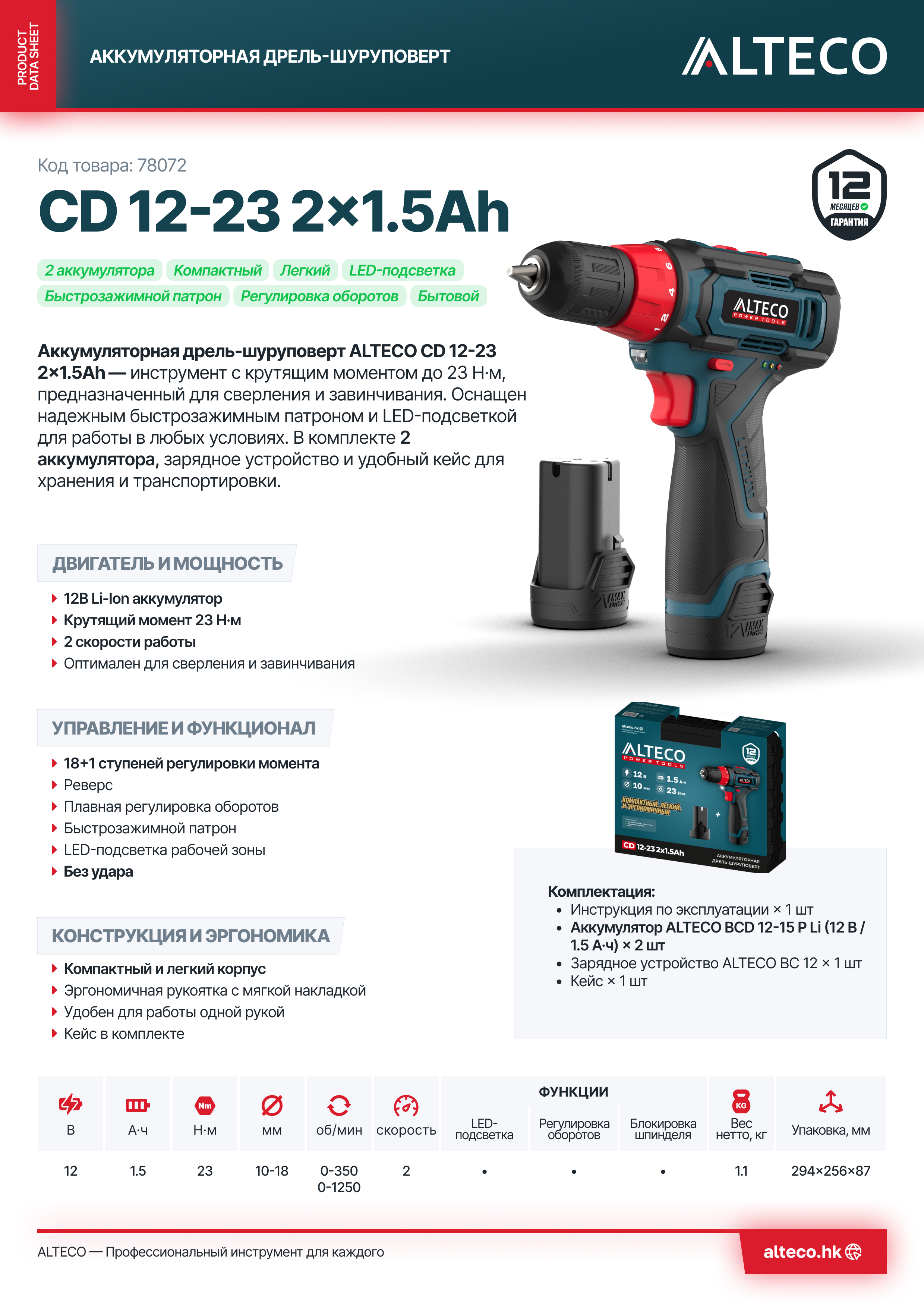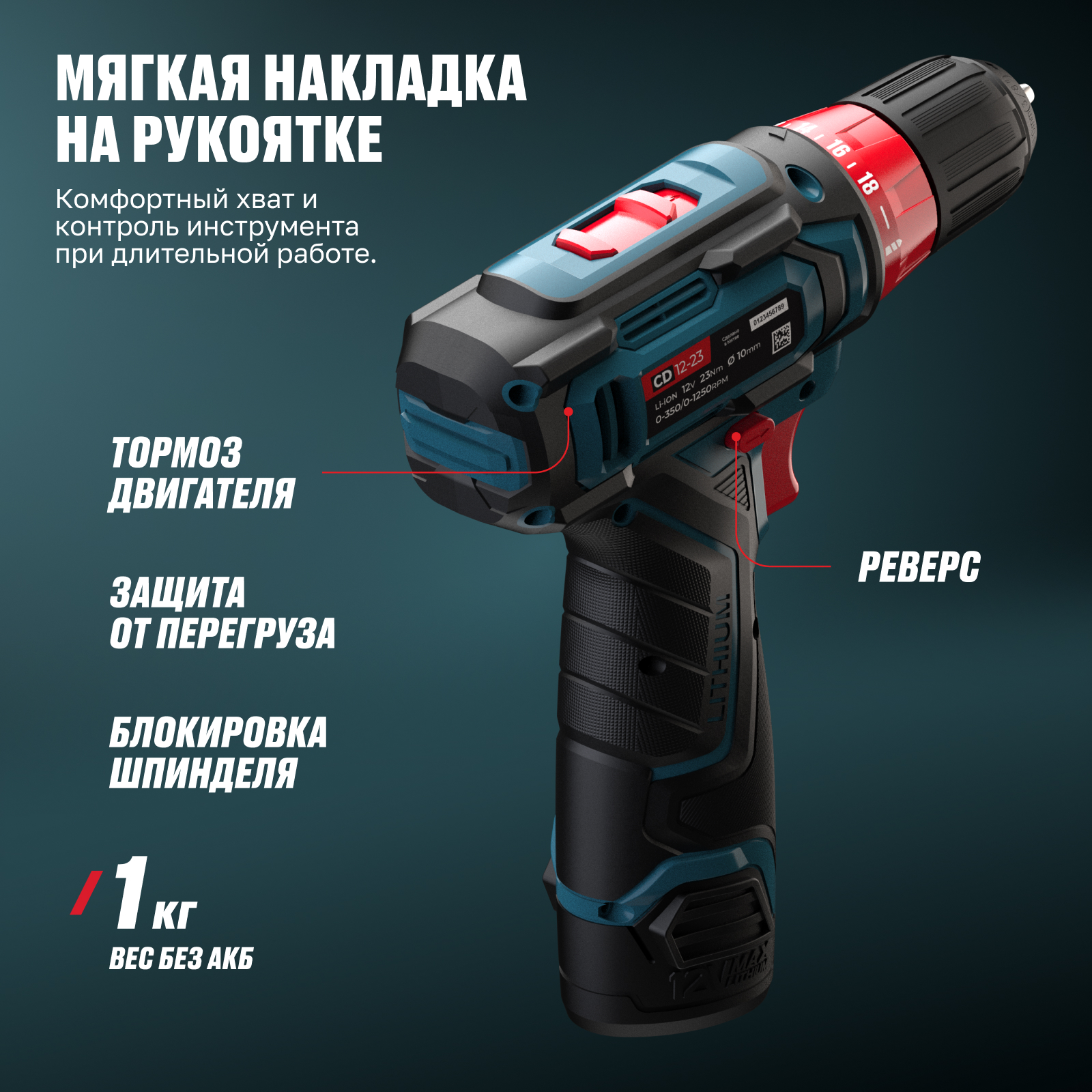 - Крутящий момент 23 Нм — справляется с крепежом в твердых материалах.
