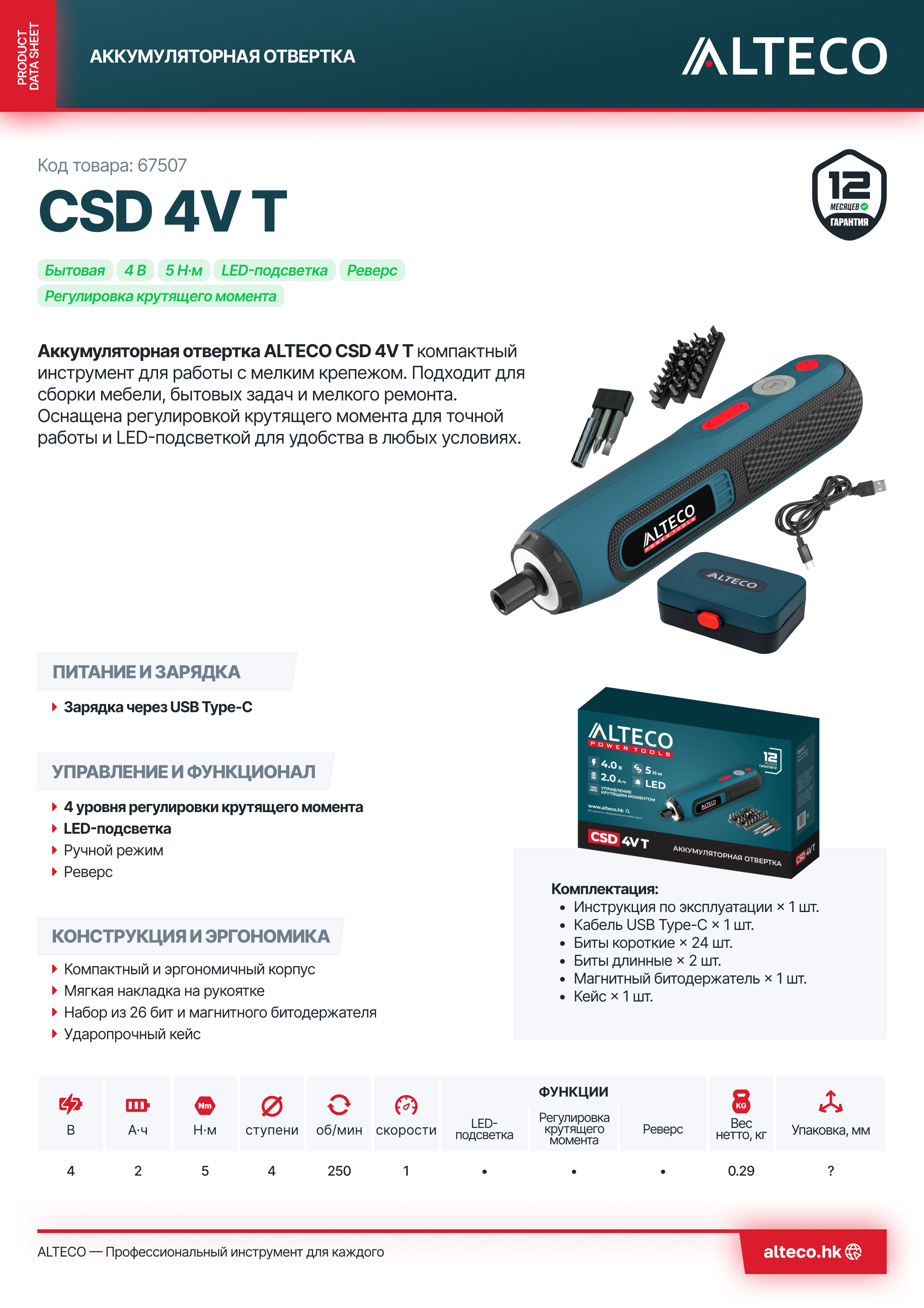 Преимущества ALTECO CSD 4V T
