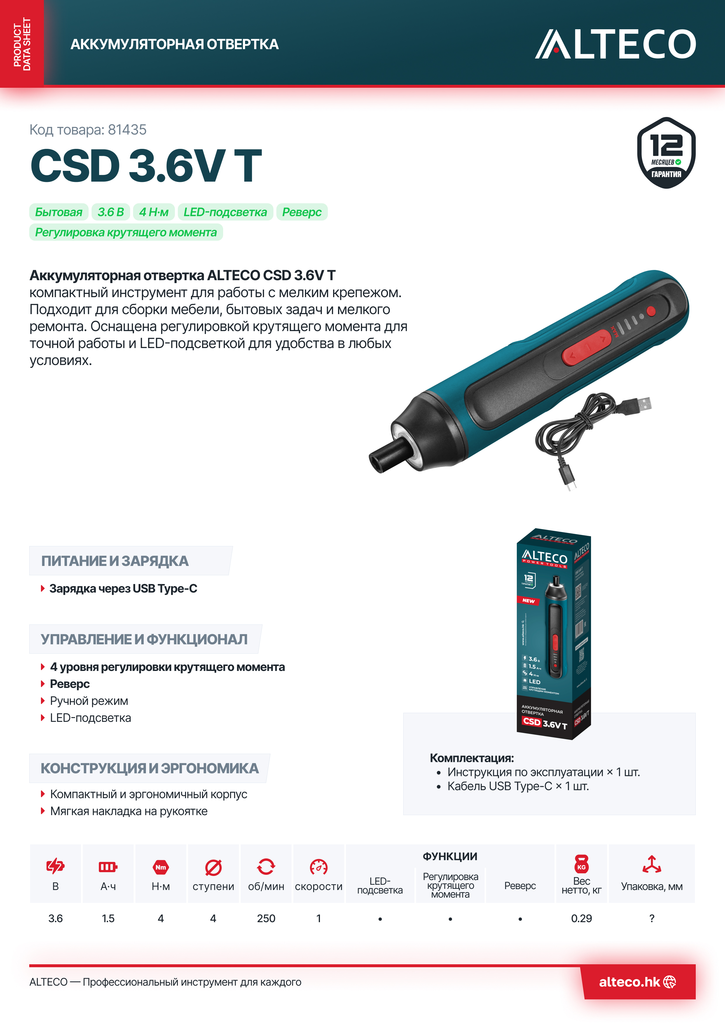 - 4 уровня регулировки крутящего момента — для точной и безопасной работы с различным крепежом.
