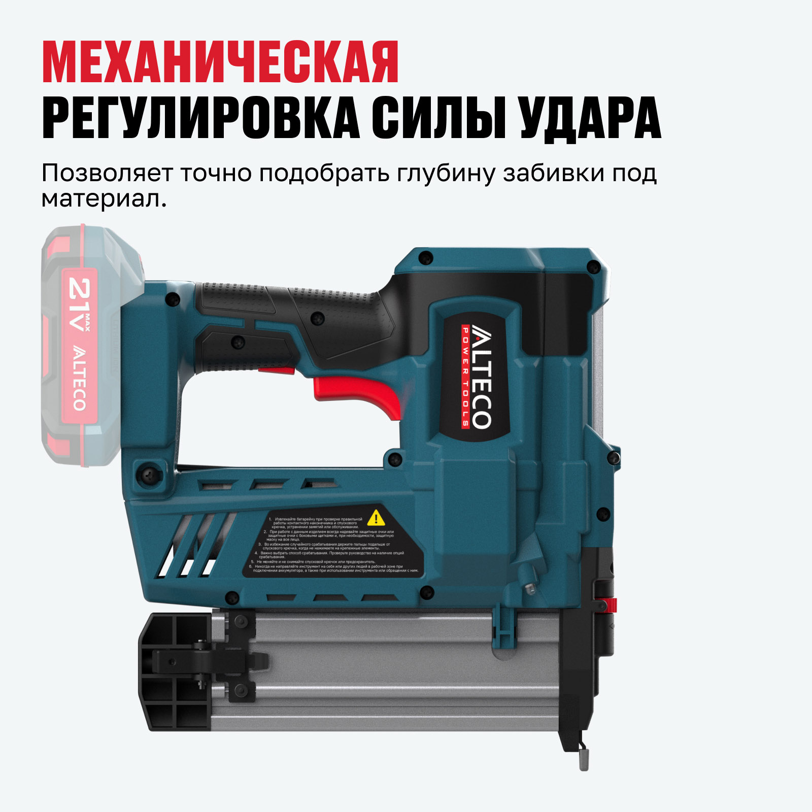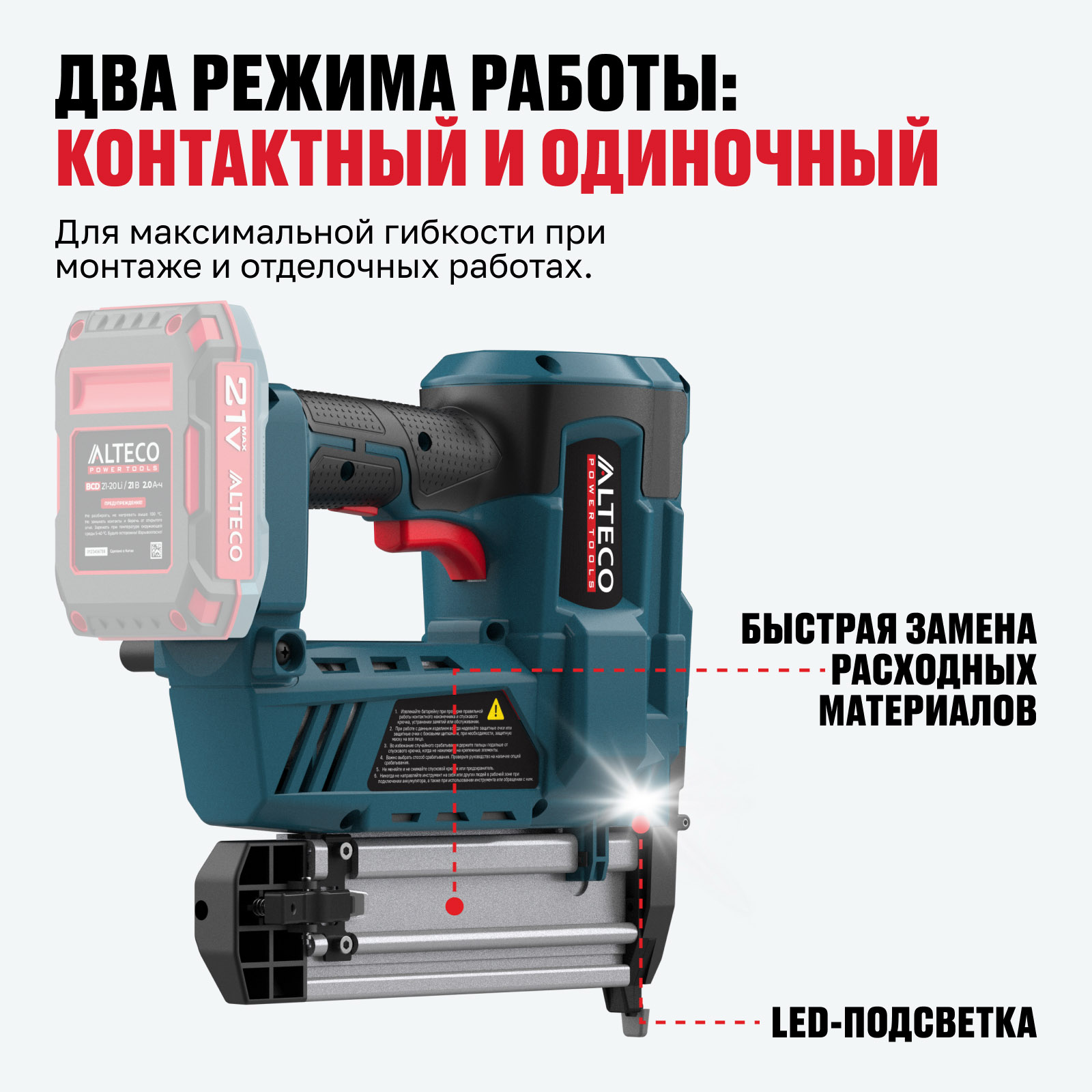 - Часть единой аккумуляторной системы ALTECO 21Vmax — один аккумулятор подходит для всех инструментов этой серии, обеспечивая удобство, экономию и гибкость в работе.