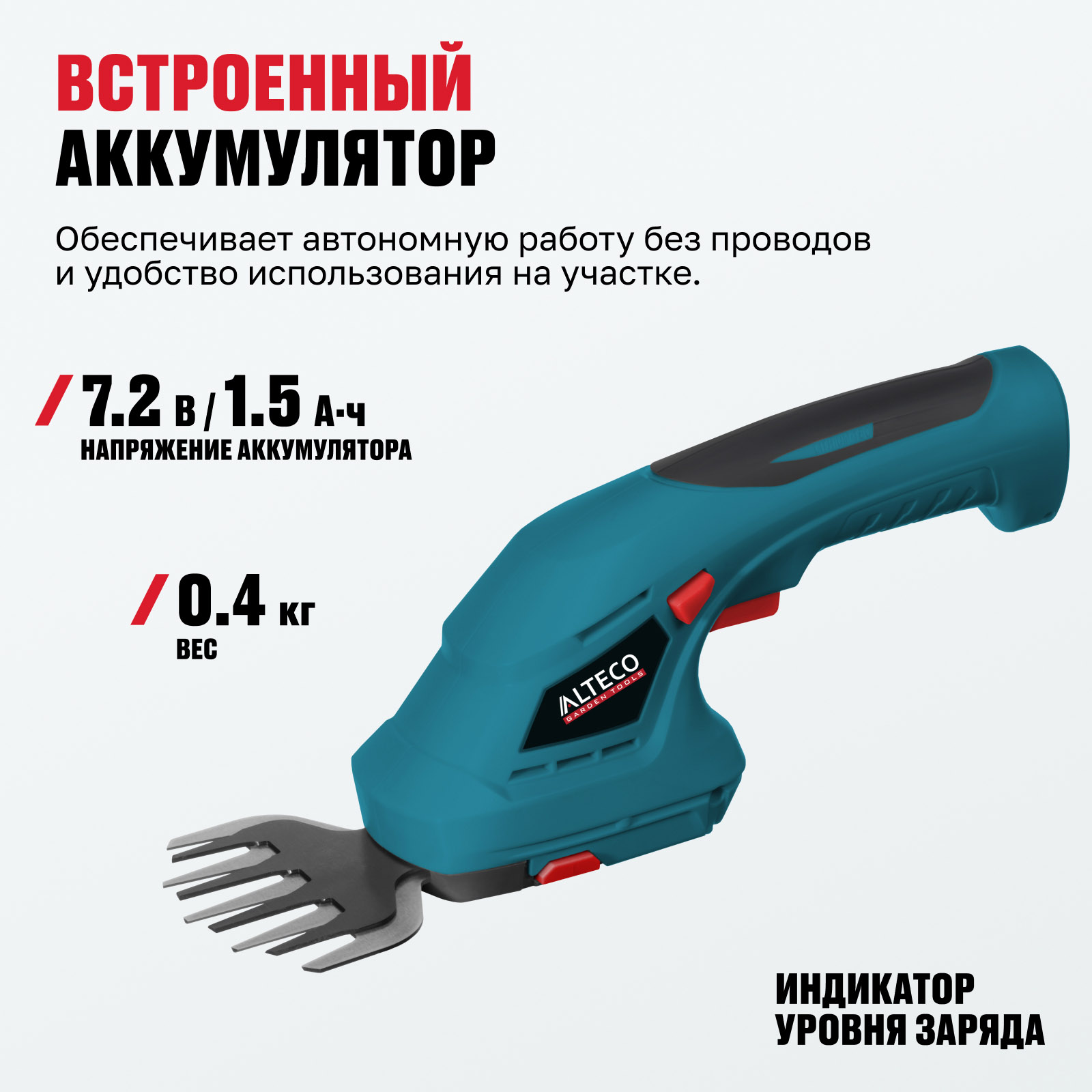 - Встроенный аккумулятор 7.2 В / 1.5 Ач — обеспечивает автономную работу без проводов и удобство использования на участке.