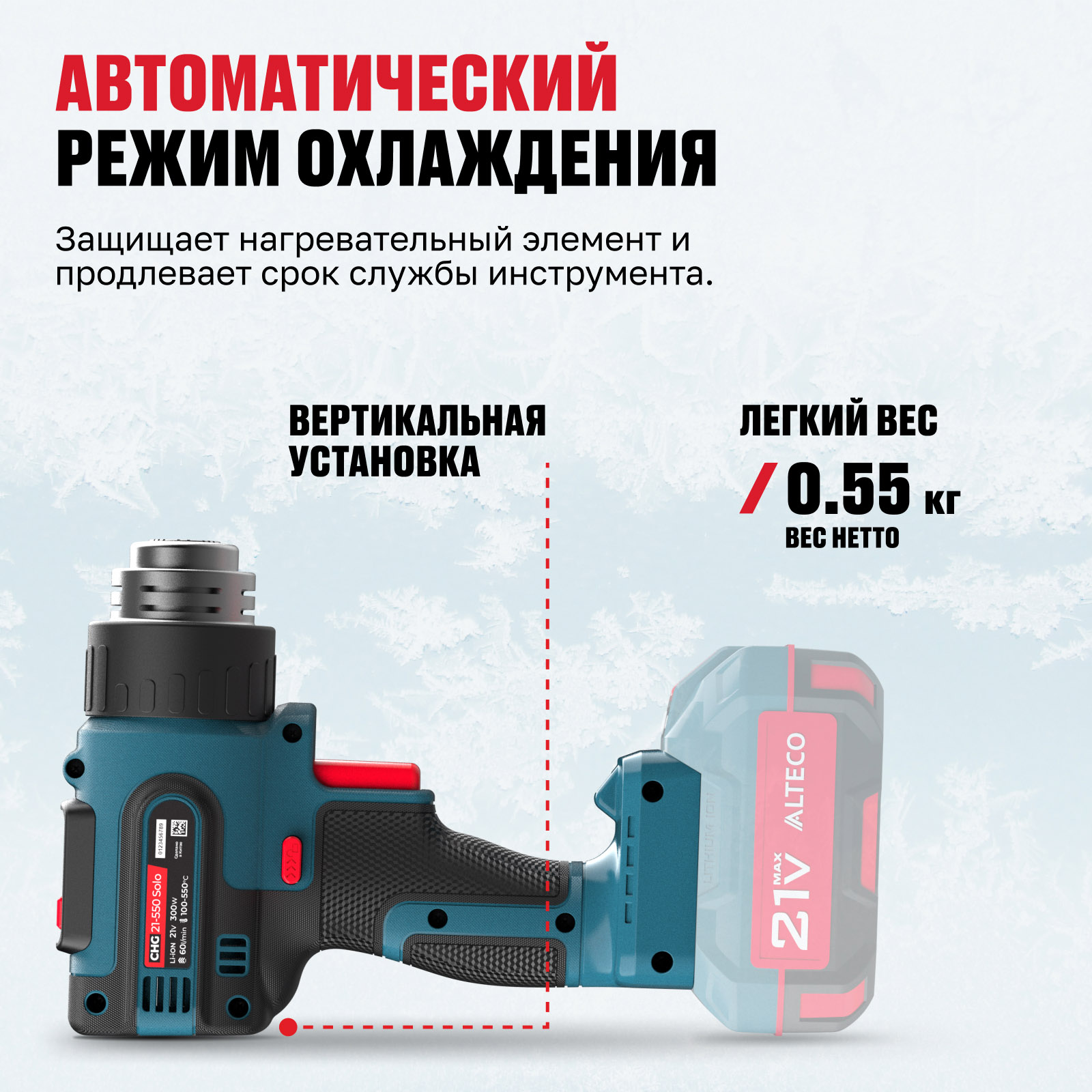 - Автоматический режим охлаждения — защищает нагревательный элемент и продлевает срок службы инструмента.