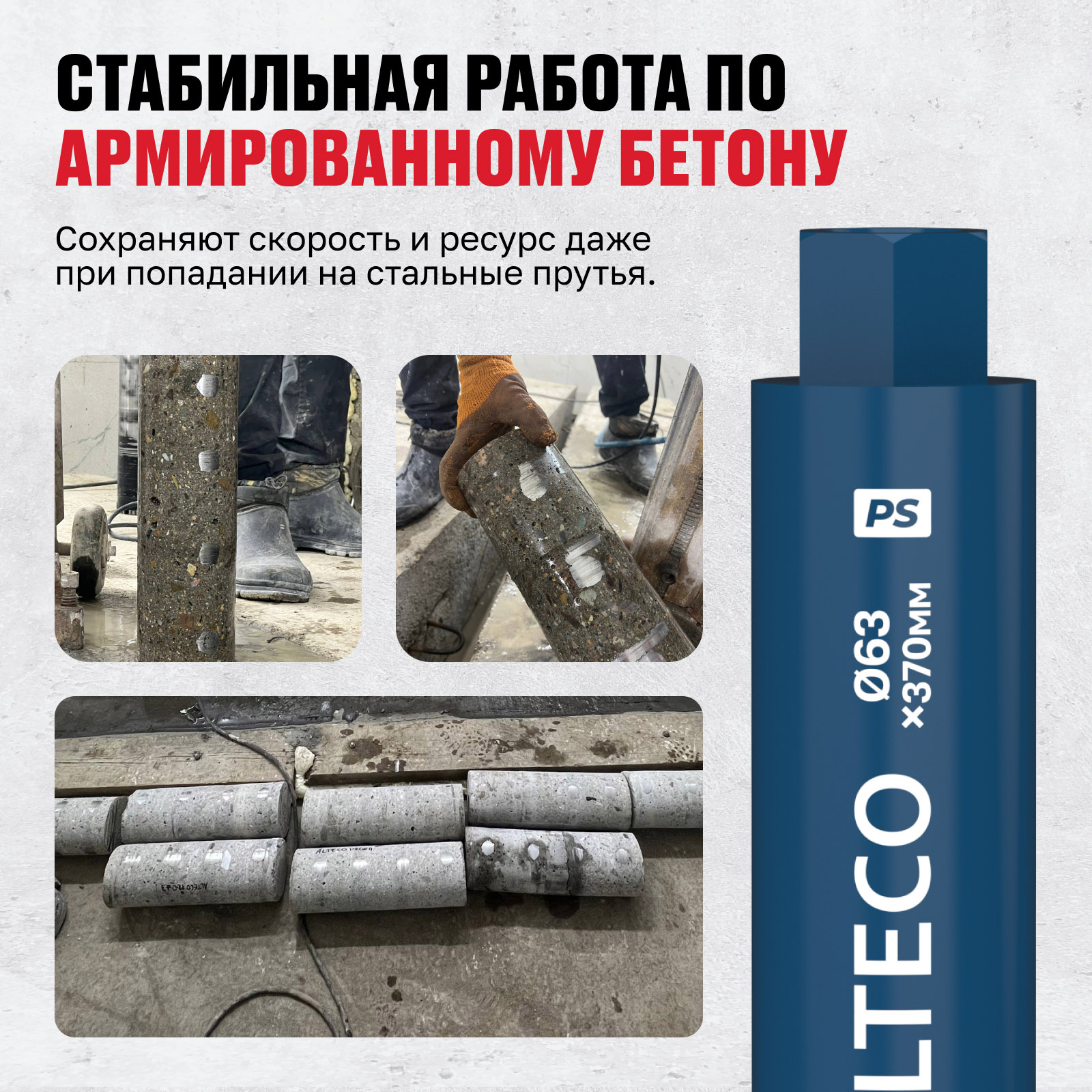 - Стабильная работа по армированному бетону — сохраняют скорость и ресурс даже при попадании на стальные прутья.