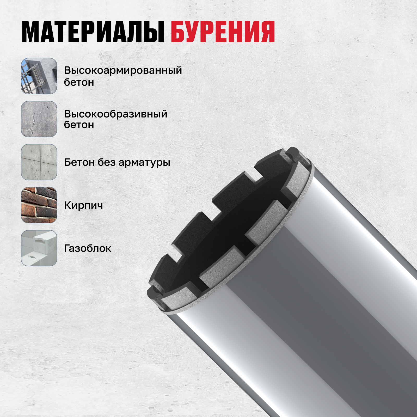 | Бурение по высокообразивному бетону | да |