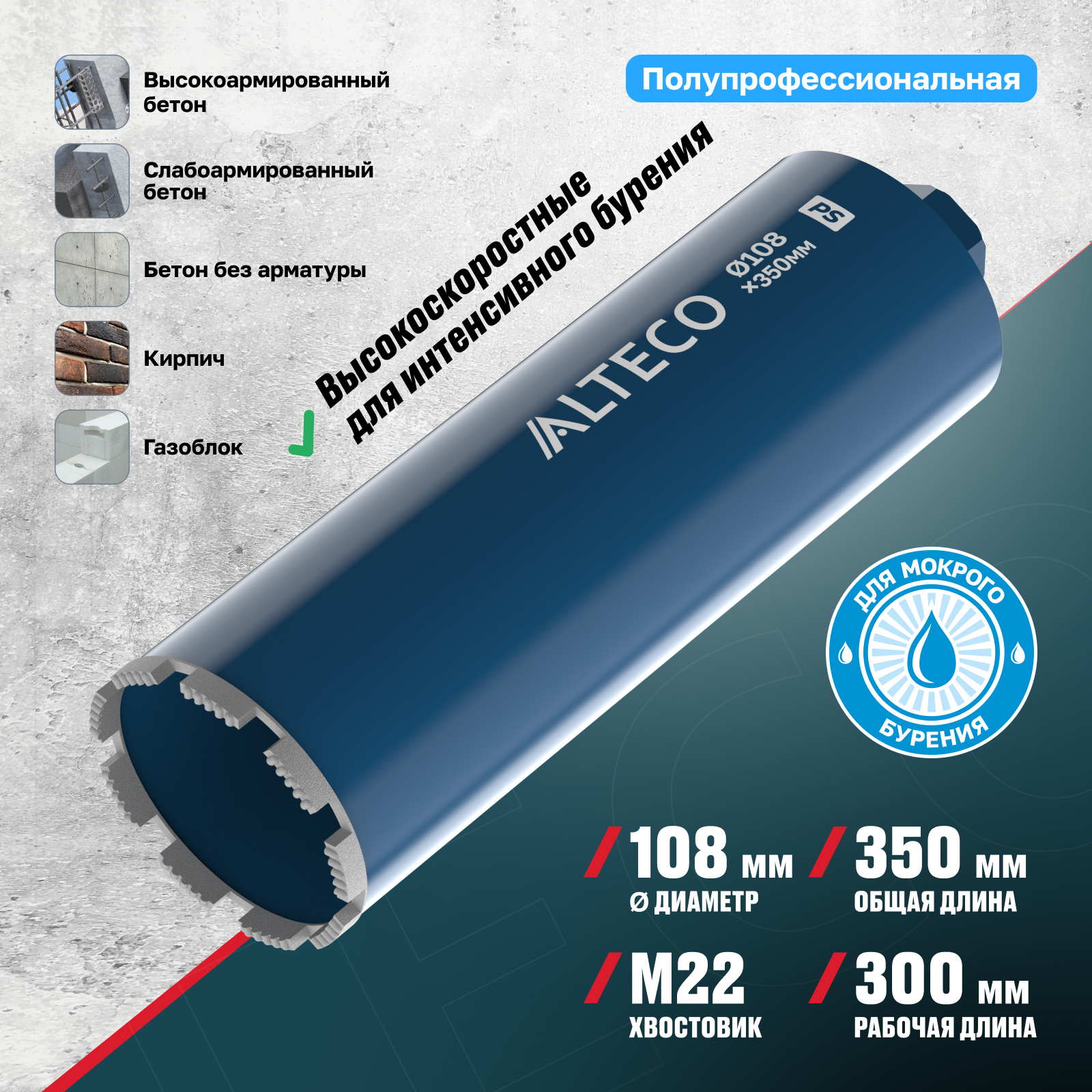 - Глубина сверления до 300 мм — позволяет проходить большинство стен и перекрытий за один заход без необходимости высверливать керн.
