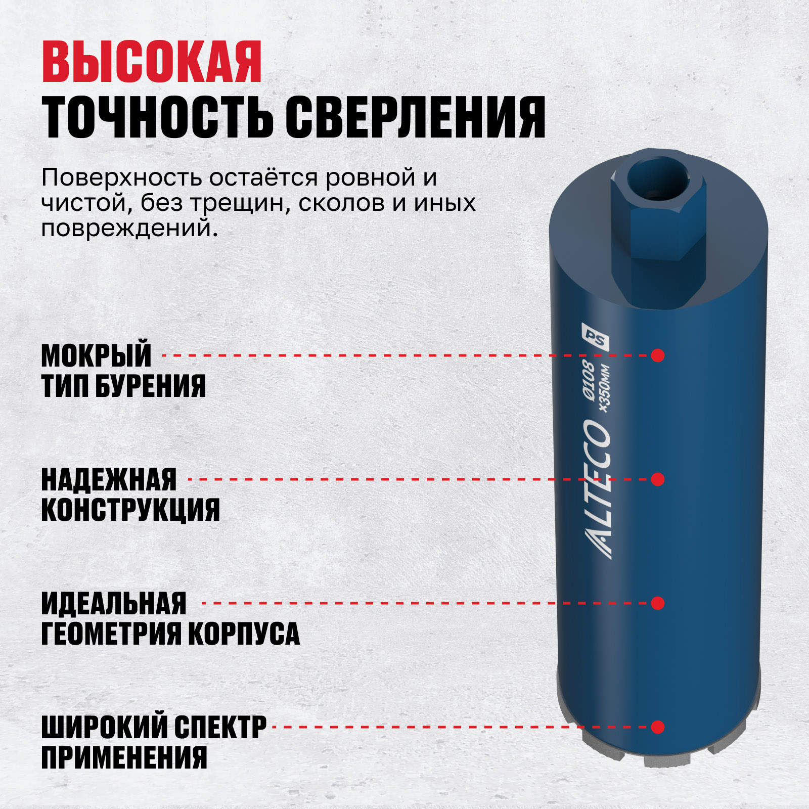⚠️ Важно: Данная коронка не предназначена для сухого бурения. Используйте охлаждение водой для продления срока службы инструмента и коронки. Не предназначена для работы с инструментом с микроударом.