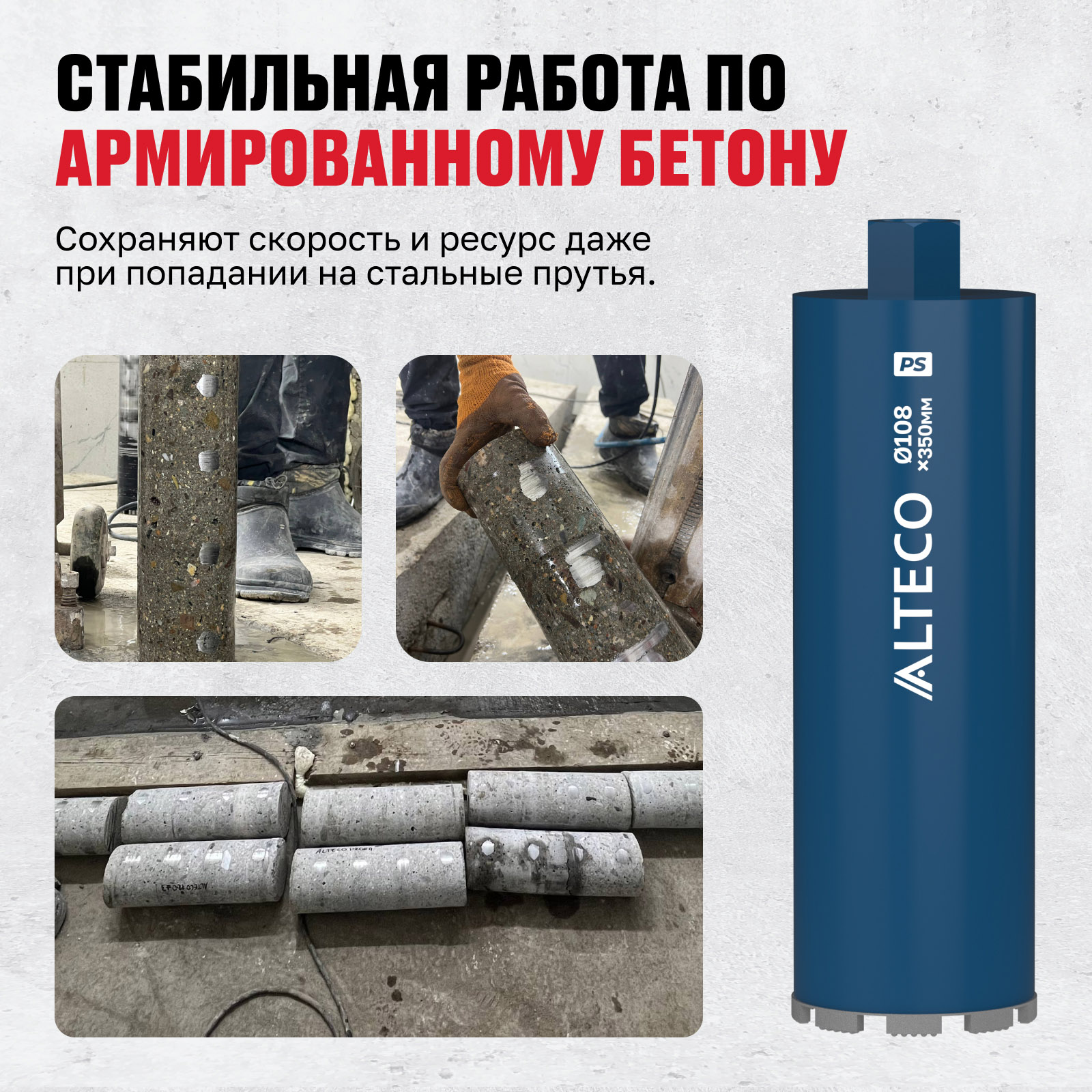 - Мокрый тип бурения — предотвращает перегрев и продлевает срок службы коронки.