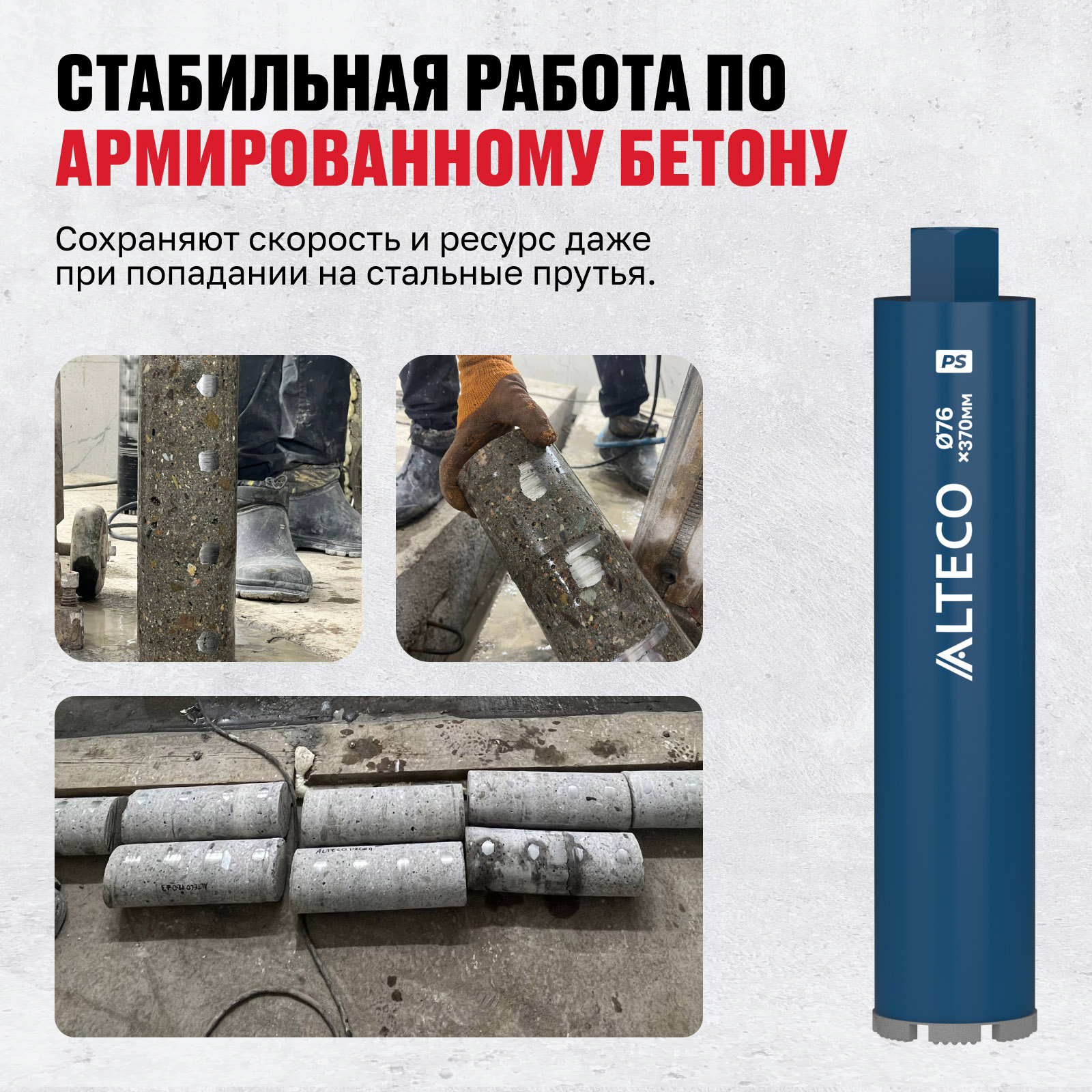 - Стабильная работа по армированному бетону — сохраняют скорость и ресурс даже при попадании на стальные прутья.