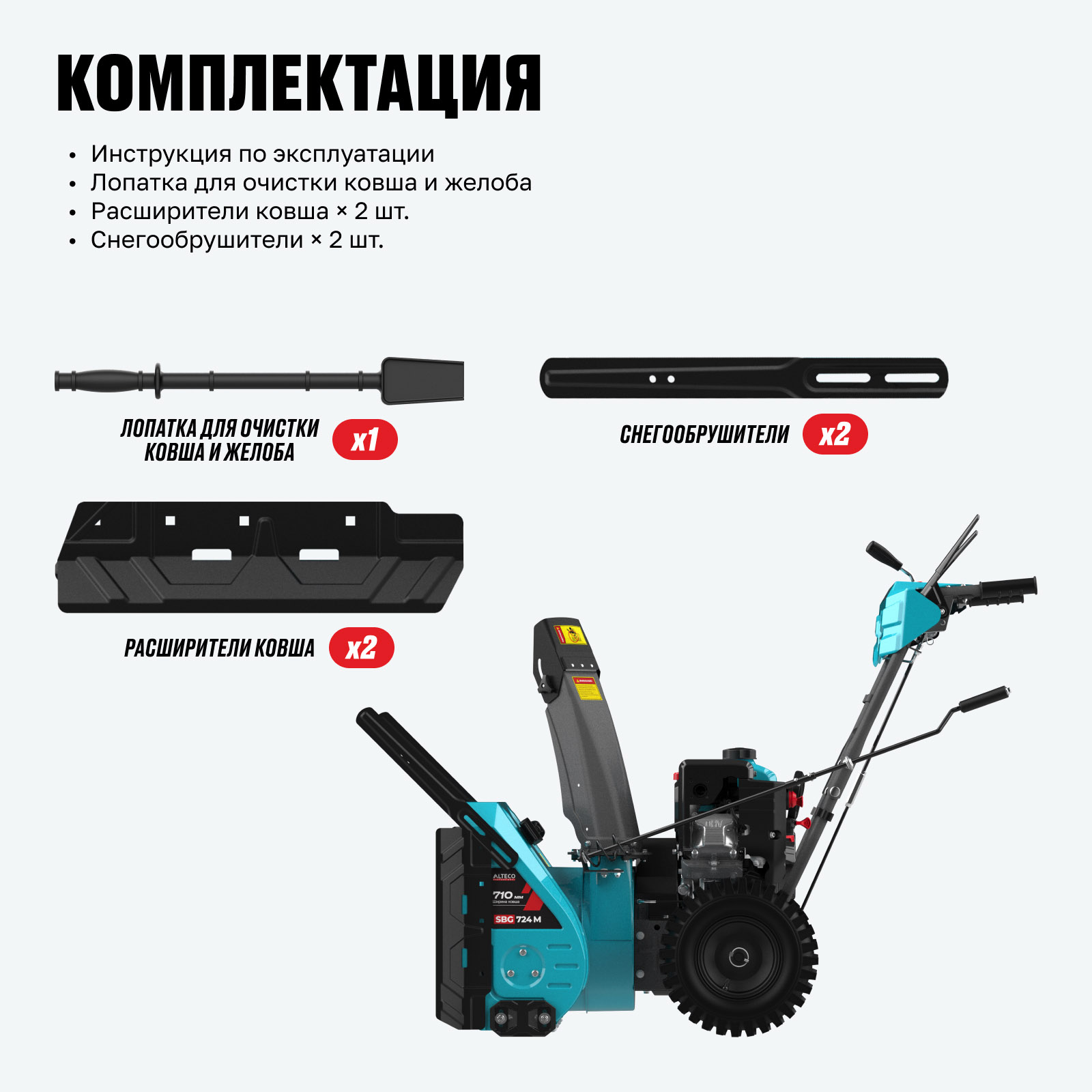- Лопатка в комплекте — удобная очистка выбросного желоба от наледи и снега.