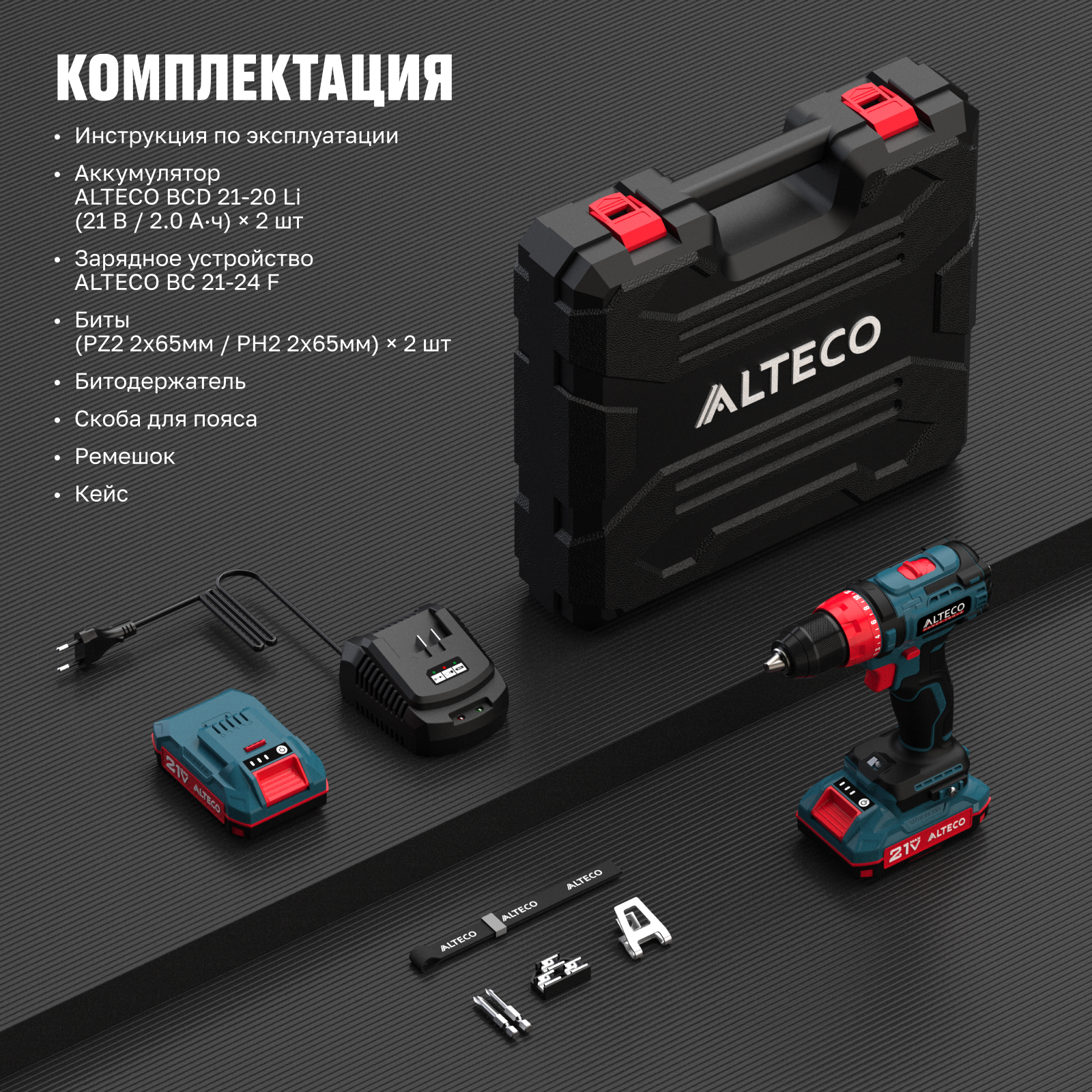 - Аккумулятор ALTECO BCD 21-20 Li (21 В / 2.0 А·ч) × 2 шт