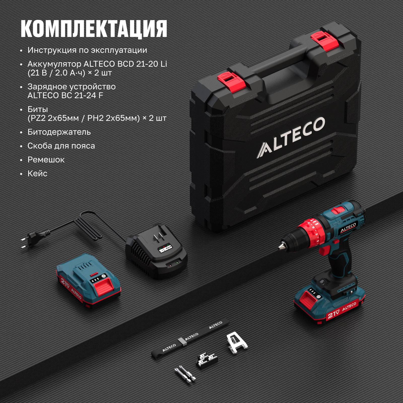 - Аккумулятор ALTECO BCD 21-20 Li (21 В / 2.0 А·ч) × 2 шт