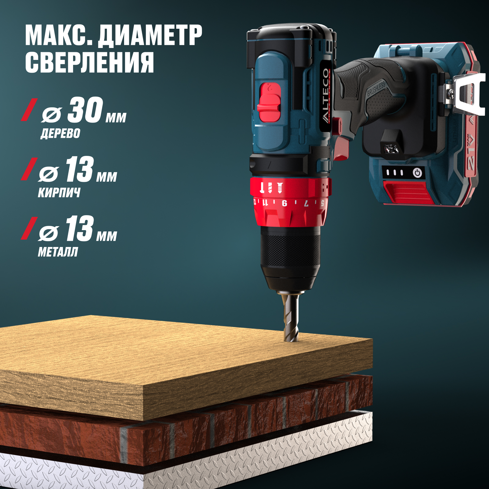 | Макс. диаметр сверления (кирпич) | 13 мм |
