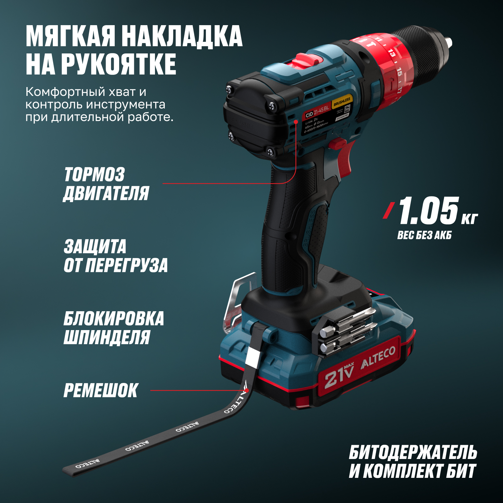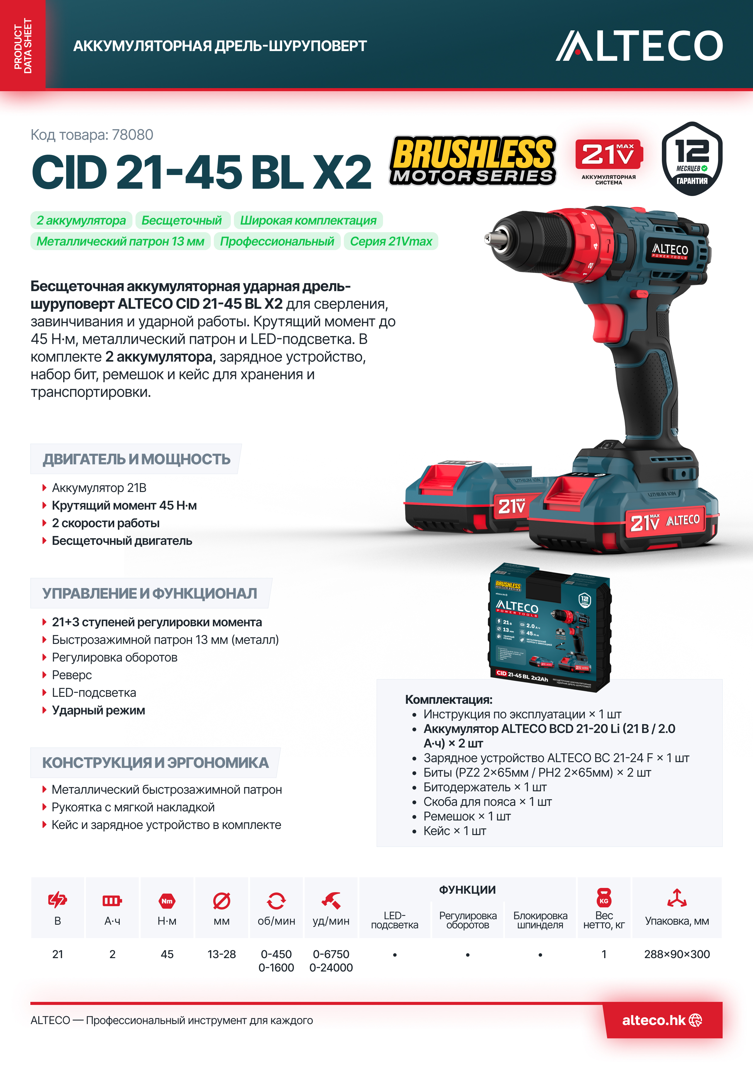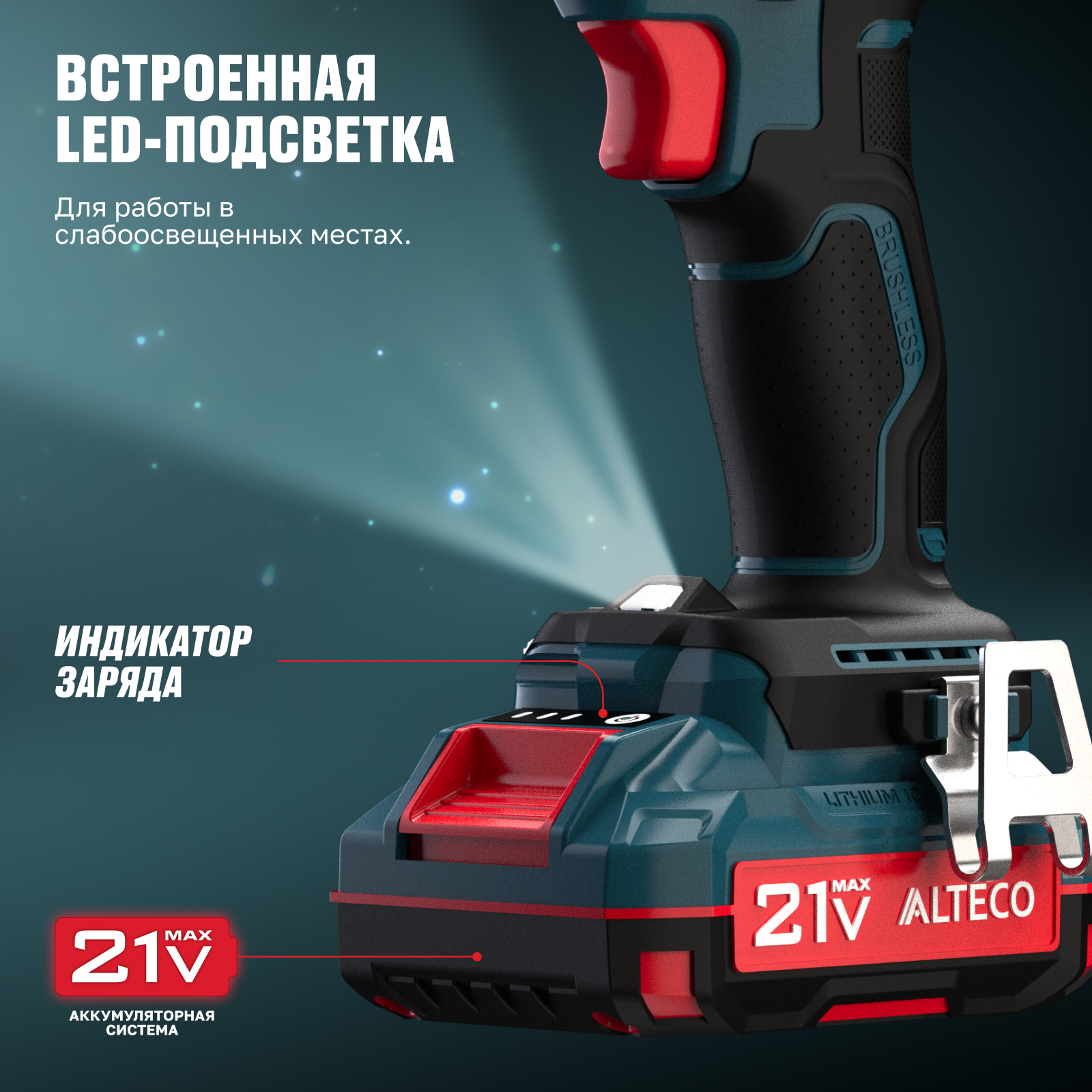 - Часть единой аккумуляторной системы ALTECO 21Vmax — один аккумулятор подходит для всех инструментов этой серии, обеспечивая удобство, экономию и гибкость в работе.