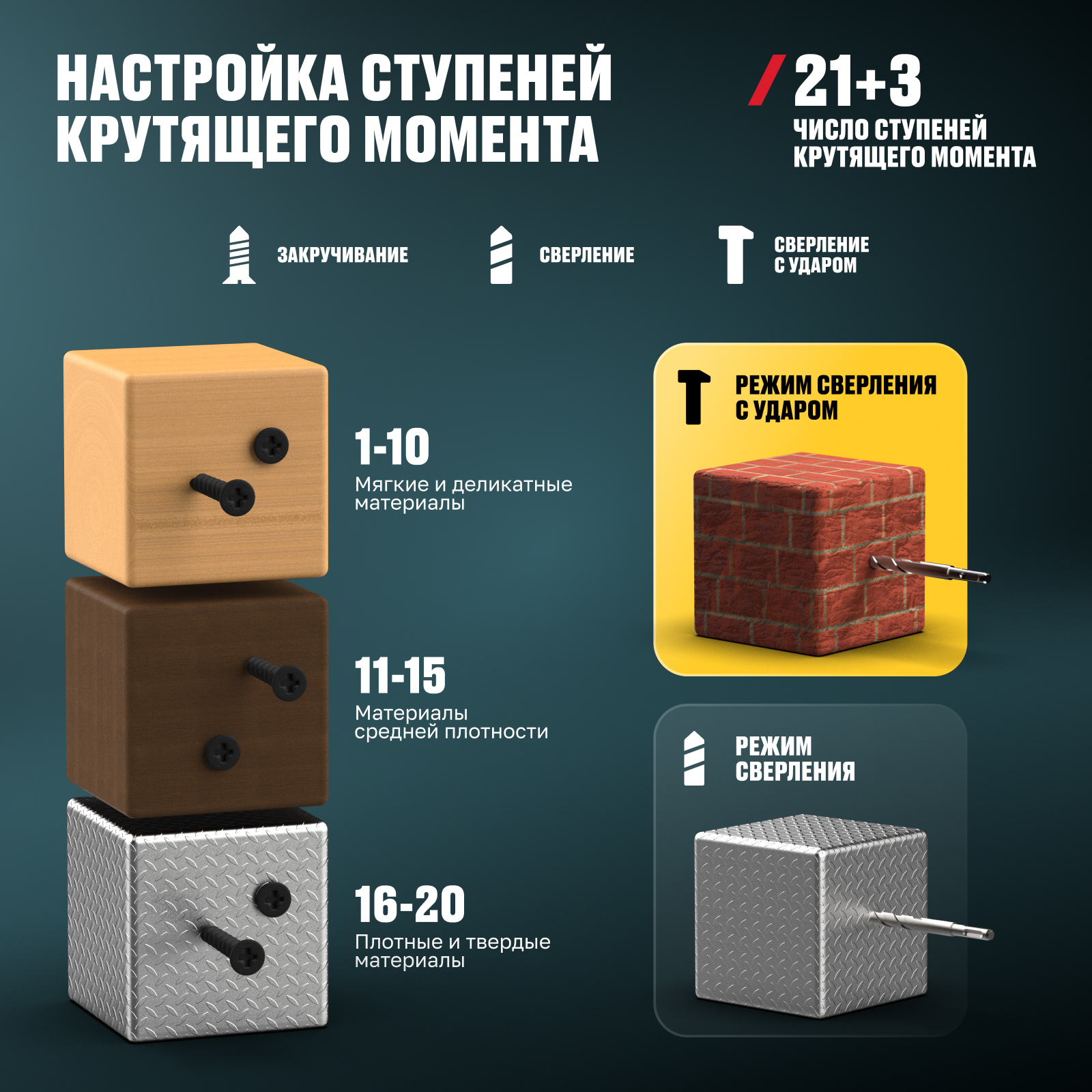 | Число ступеней крутящего момента | 21+3 |