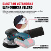 - Быстрая установка шлифлиста Velcro — обеспечивает моментальную замену оснастки без инструментов, ускоряя рабочий процесс.