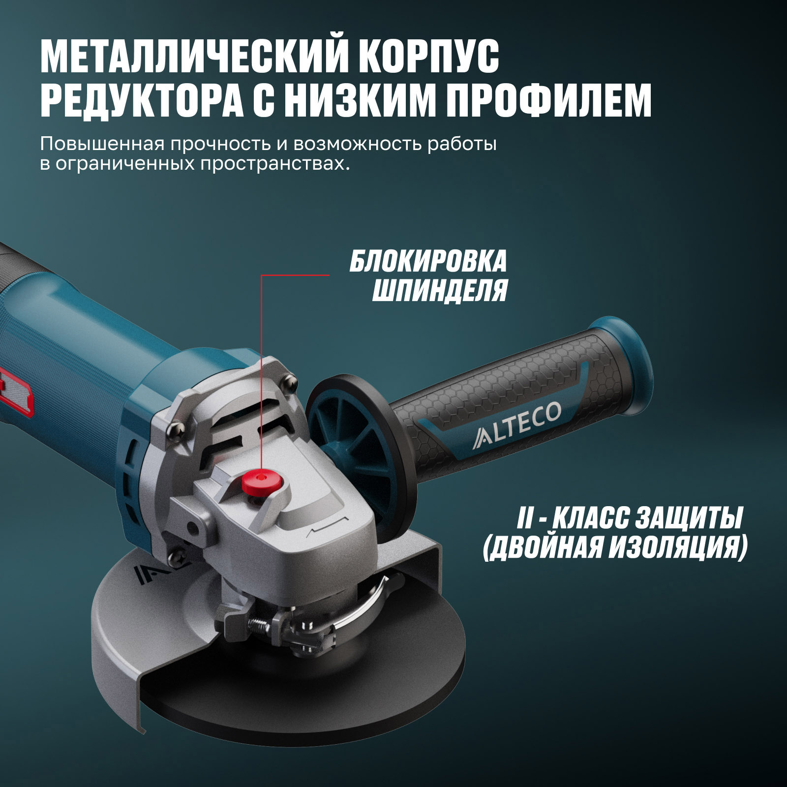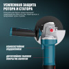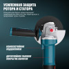 - Быстросъемный защитный кожух — надёжно защищает от искр и абразивных частиц, легко регулируется без инструмента.