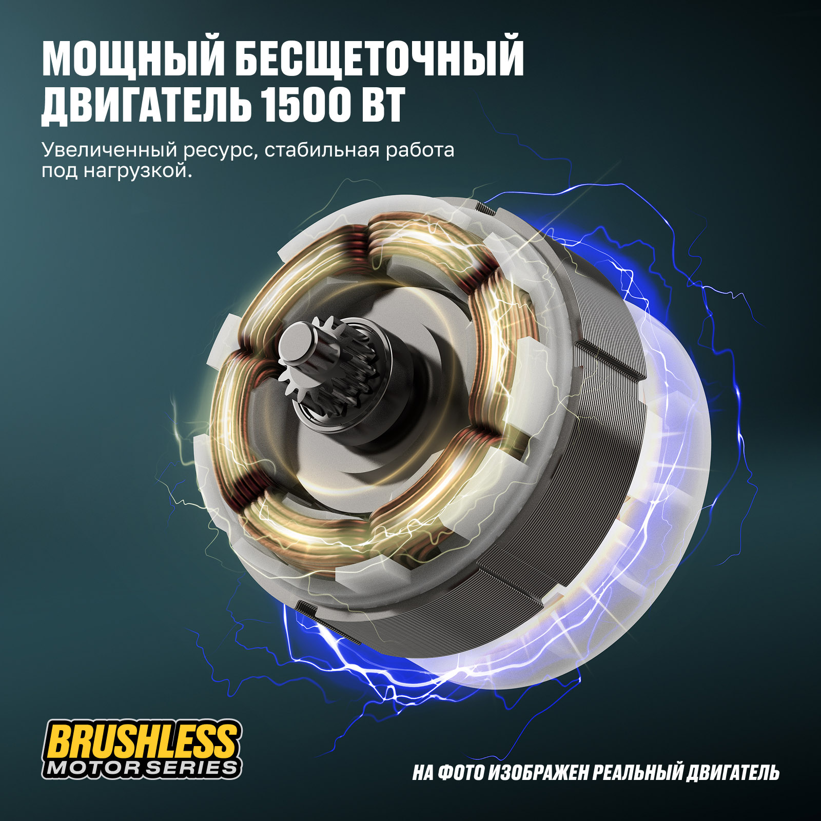 - Мощный бесщеточный двигатель 1500 Вт — увеличенный ресурс, стабильная работа под нагрузкой.