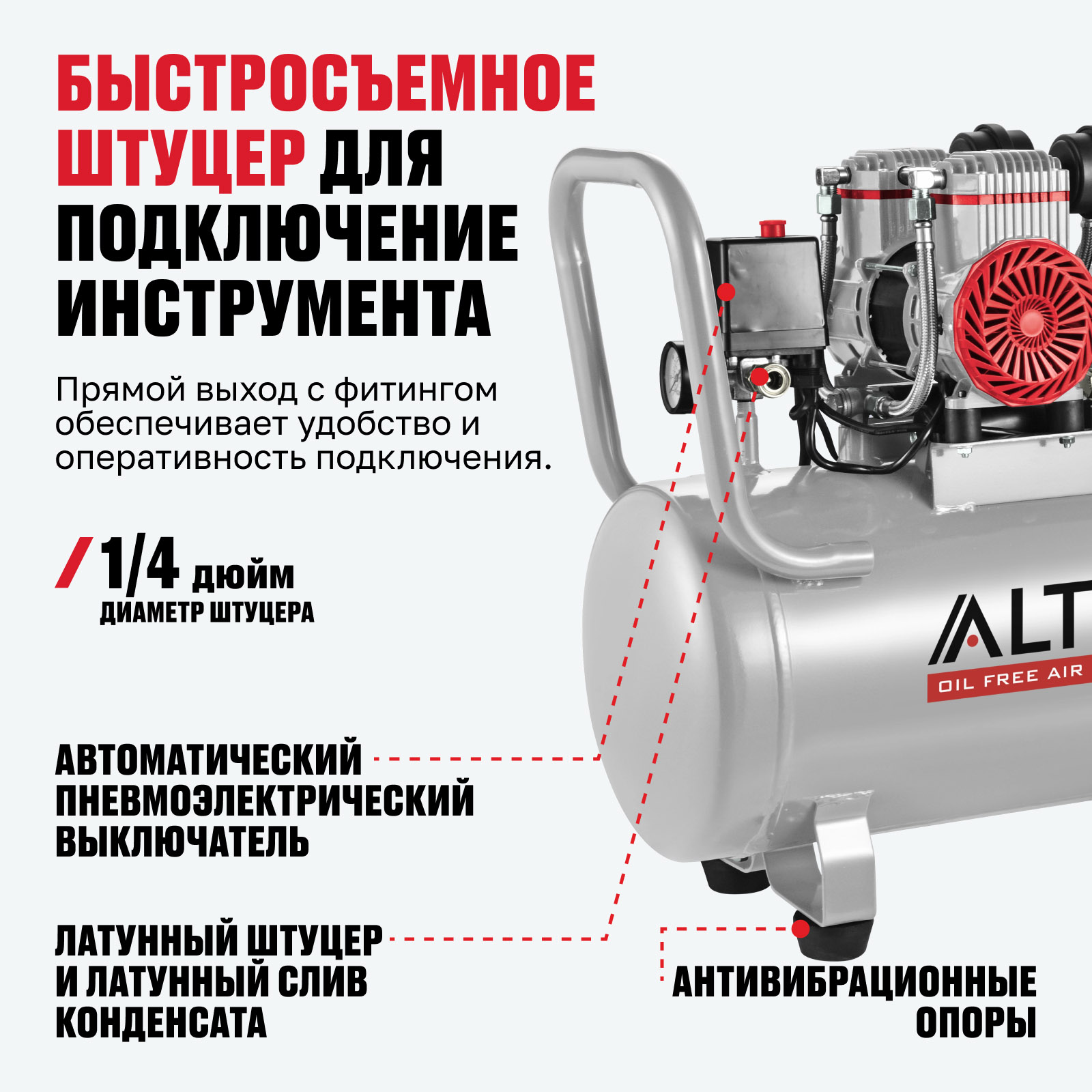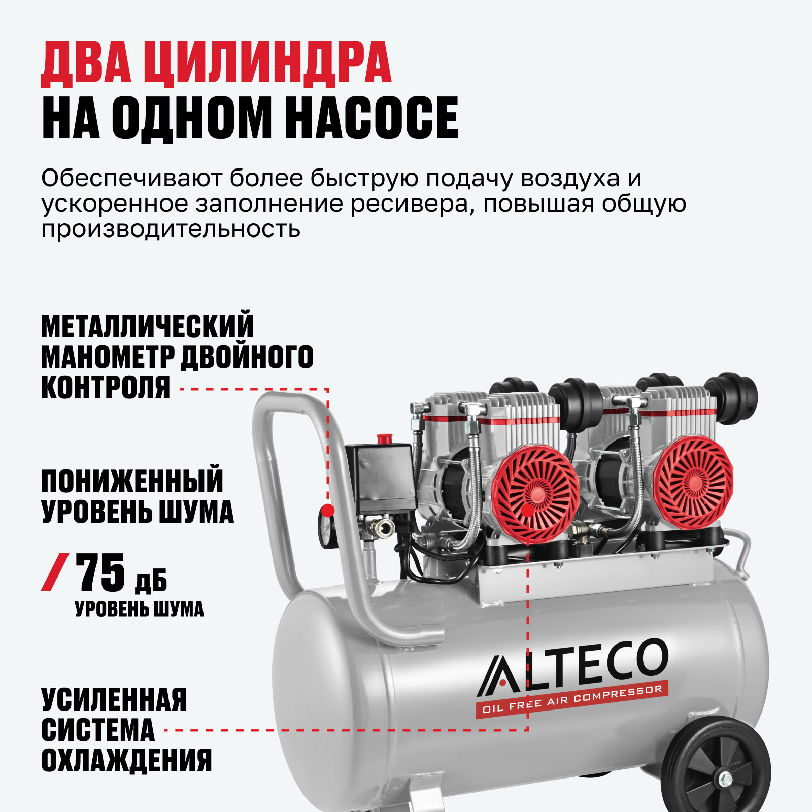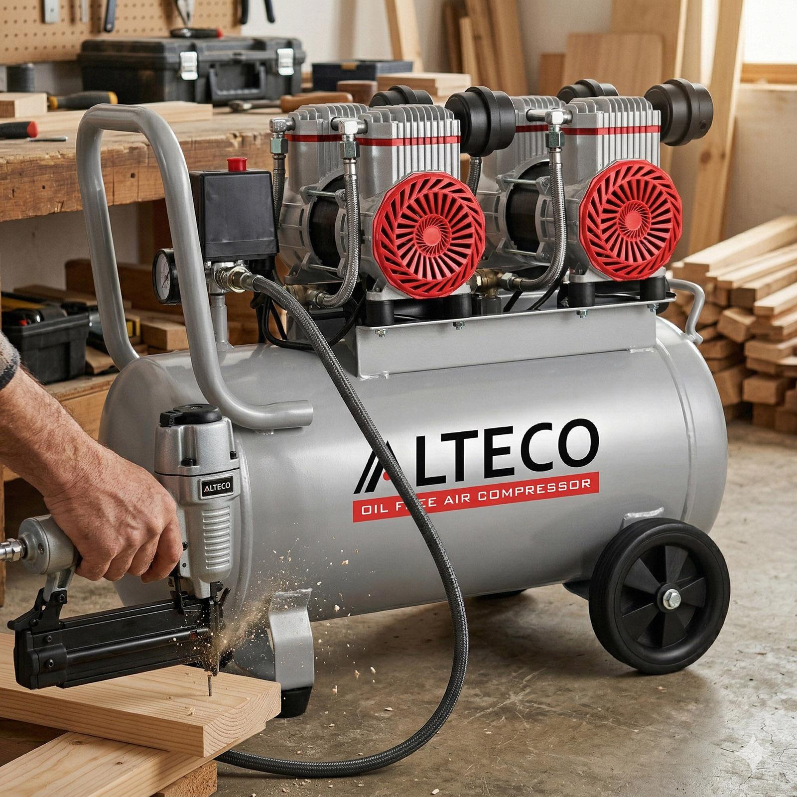 - Пониженный уровень шума — работает тише по сравнению с масляными моделями, повышая комфорт эксплуатации.
