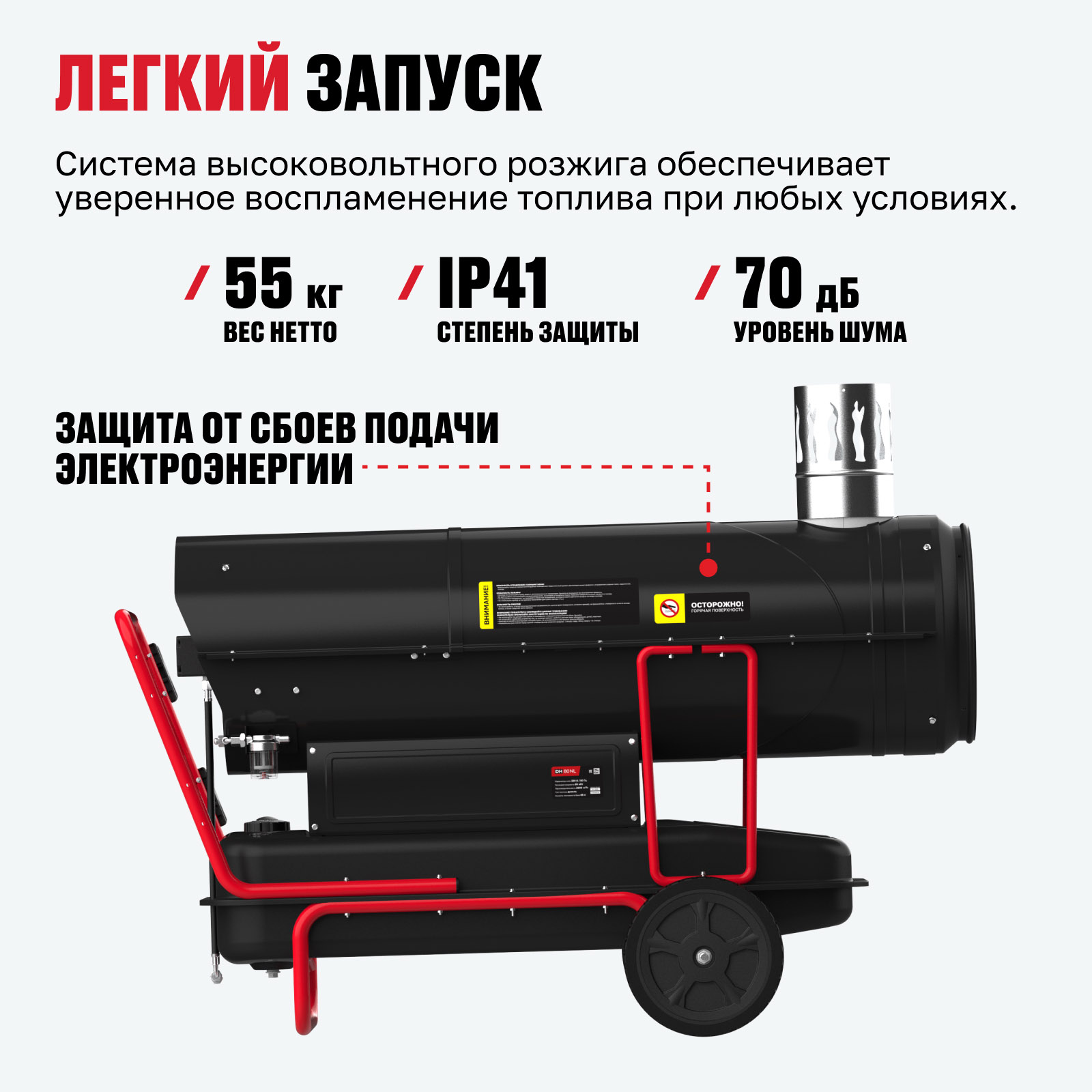 - Надежный запуск — система высоковольтного розжига обеспечивает уверенное воспламенение топлива при любых условиях.