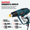 - Высокая мощность 2000 Вт — обеспечивает быстрый нагрев и стабильную подачу горячего воздуха для интенсивных работ.