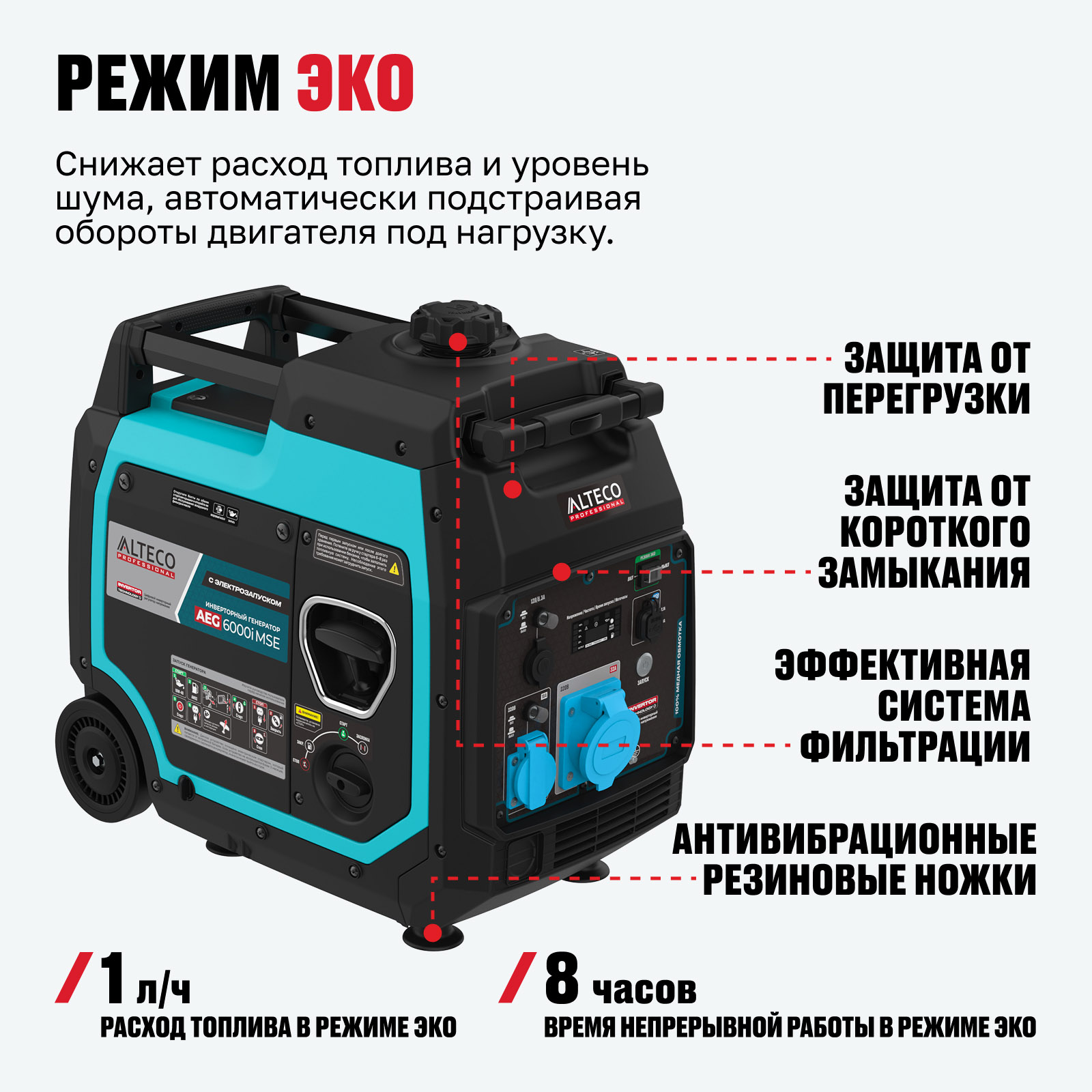 - Компактность и малый вес — заметно легче и компактнее классических портативных генераторов, удобен для транспортировки и хранения.- Электронный индикатор