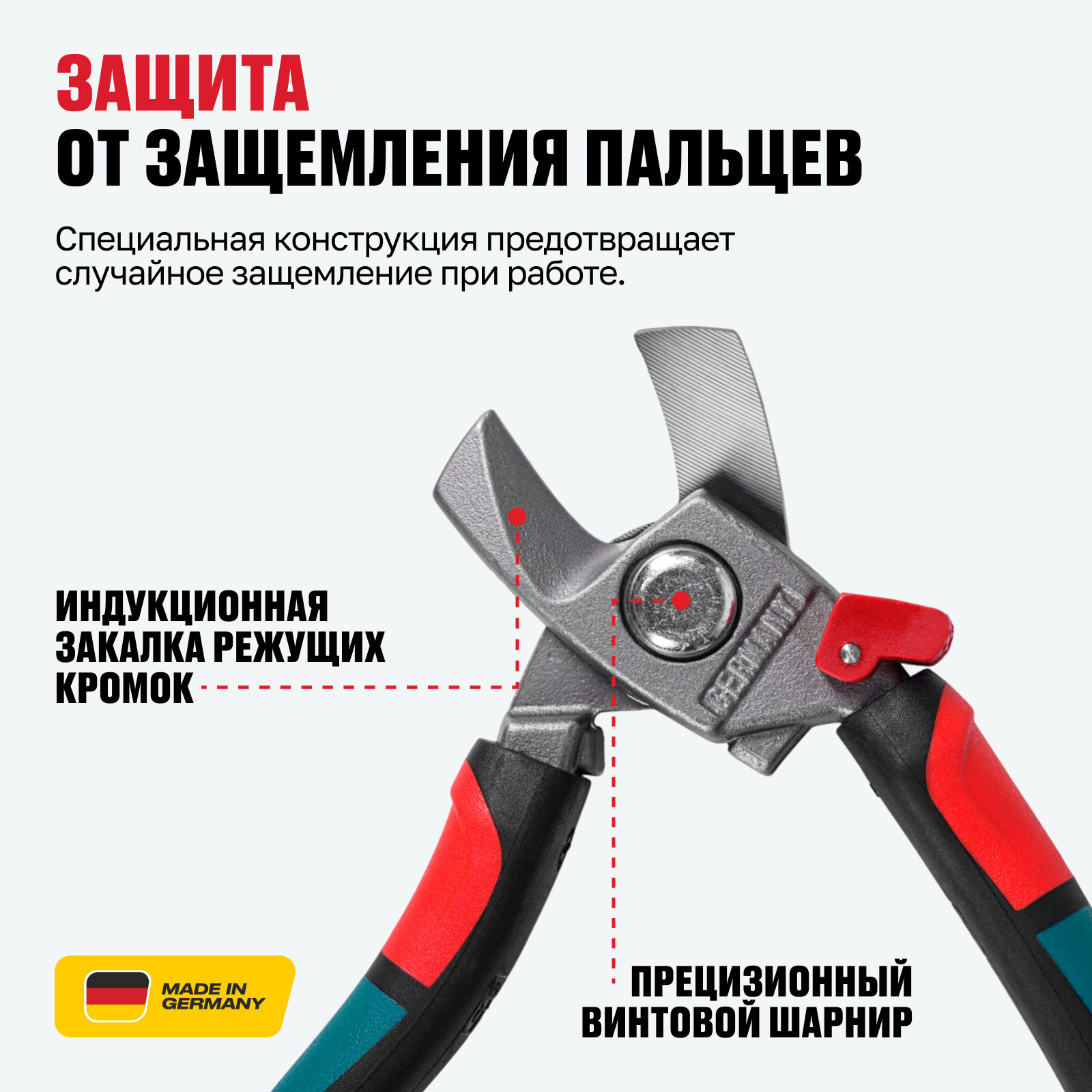 - Чистый рез без деформации кабеля — прецизионные режущие кромки обеспечивают аккуратный срез медных и алюминиевых кабелей без сдавливания и повреждения проводника.
