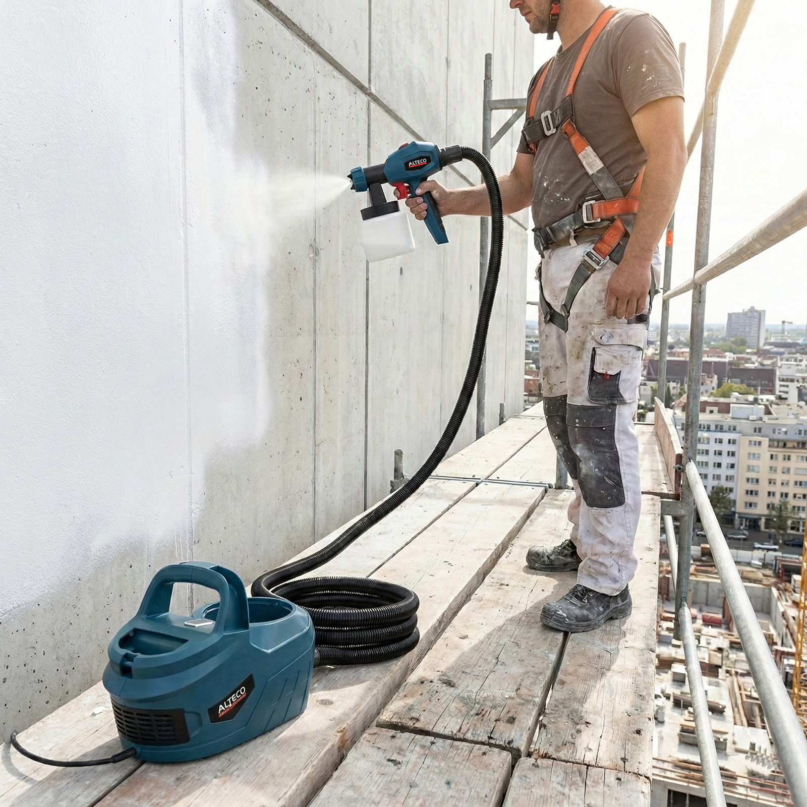 - Разнесенные компрессор и распылитель — снижают нагрузку на руки и повышают комфорт при длительном окрашивании.