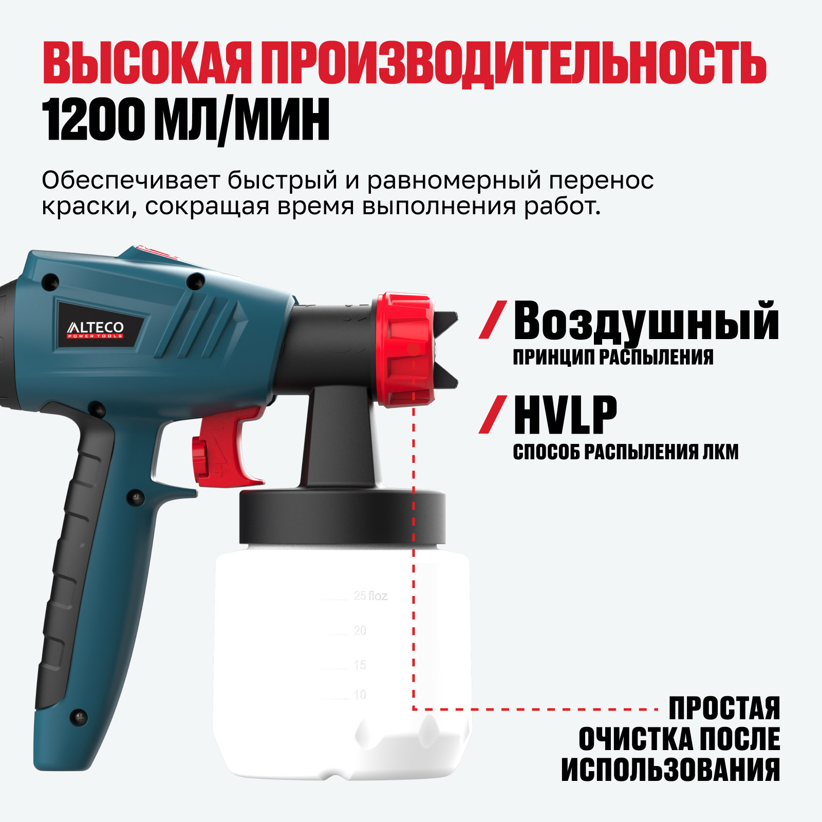 - Высокая производительность 1200 мл/мин — обеспечивает быстрый и равномерный перенос краски, сокращая время выполнения работ.