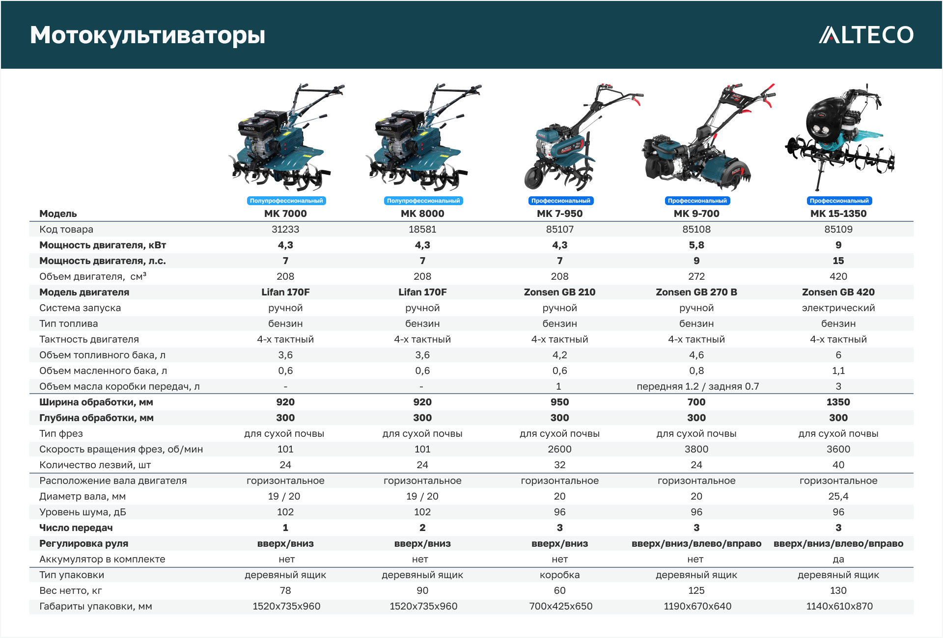 - Трехскоростная трансмиссия (две скорости вперед и одна назад) дает возможность выбирать оптимальный режим работы в зависимости от типа почвы