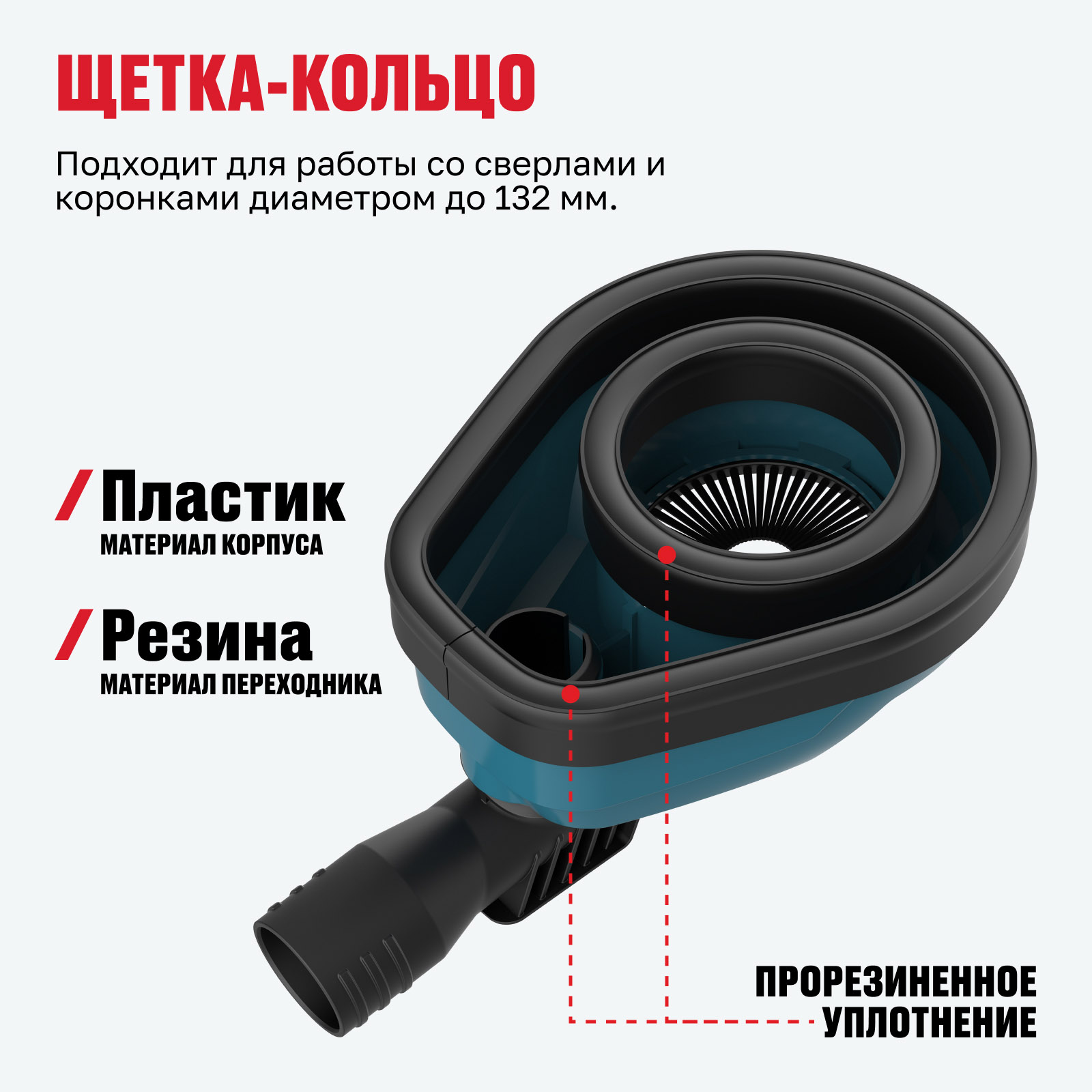 - Прорезиненное уплотнение — предотвращает попадание пыли в рабочую зону и повышает герметичность.