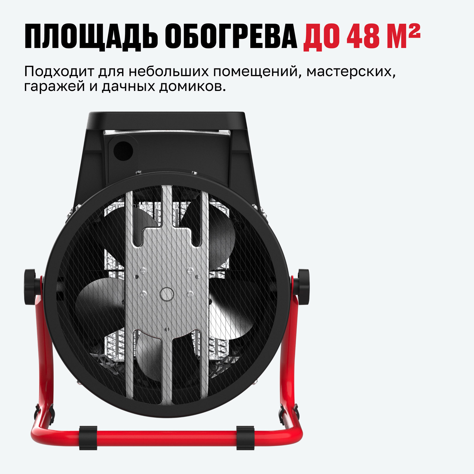 - Площадь обогрева до 48 м² — подходит для небольших помещений, мастерских, гаражей и дачных домиков.