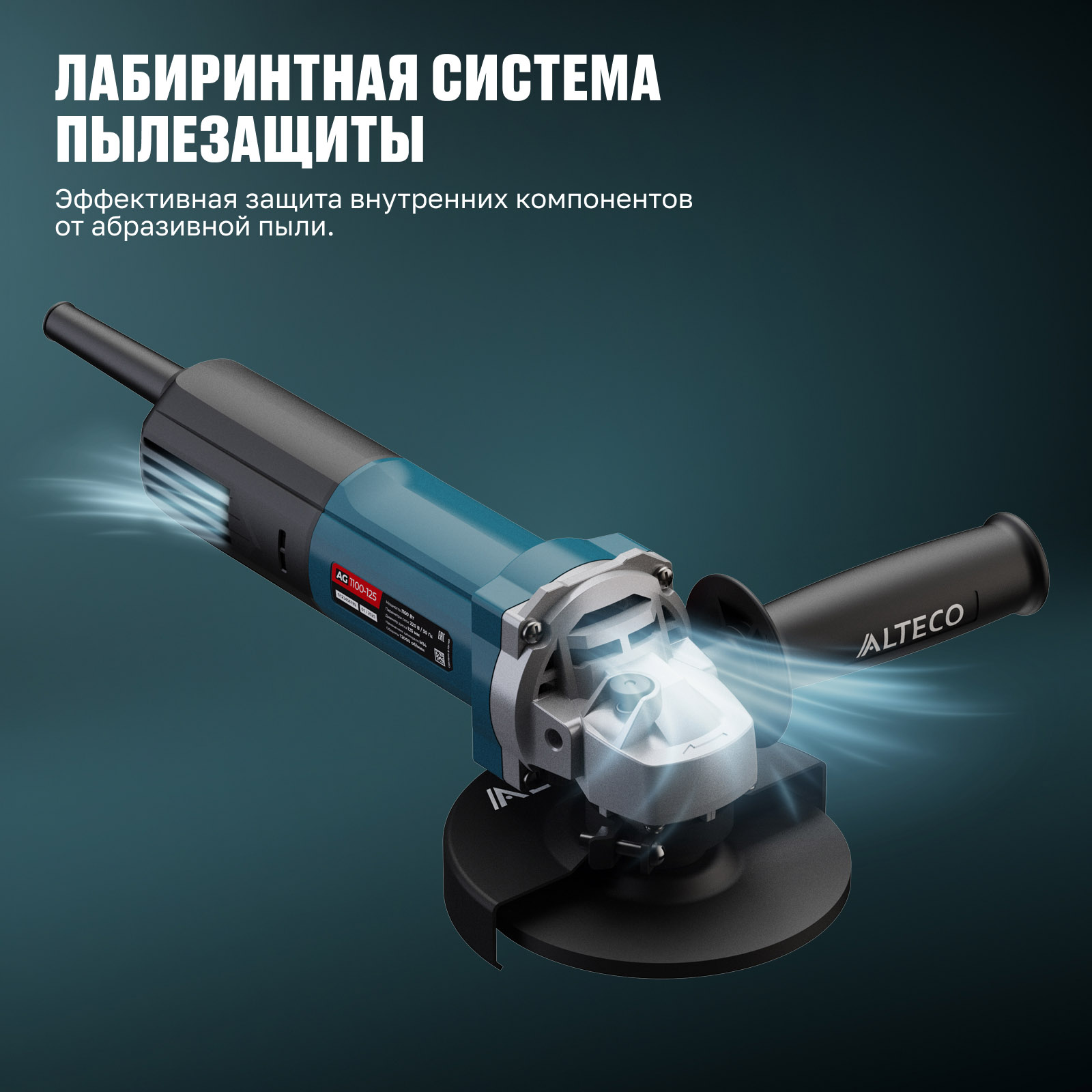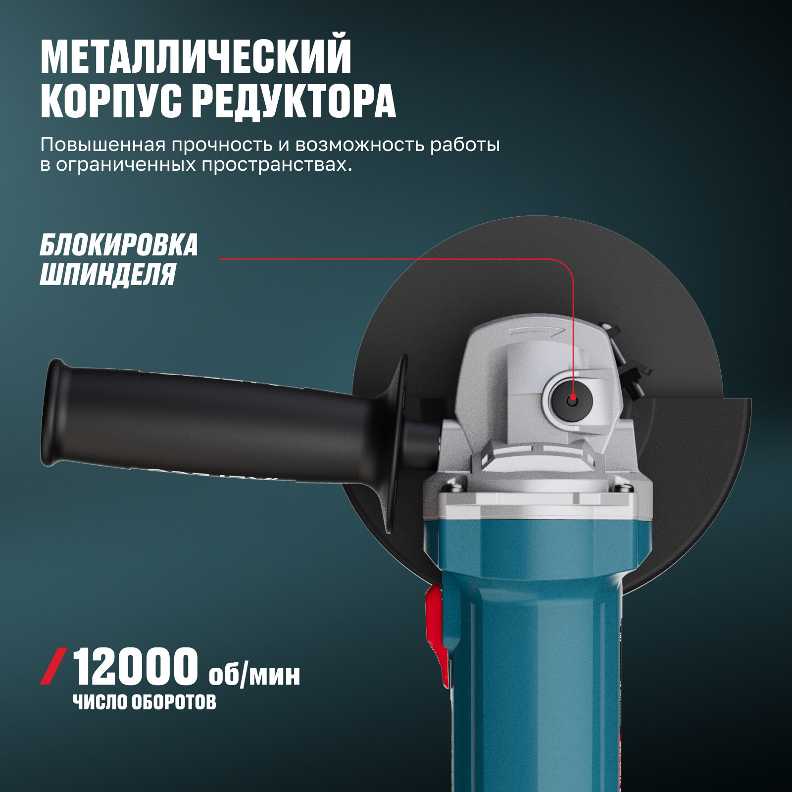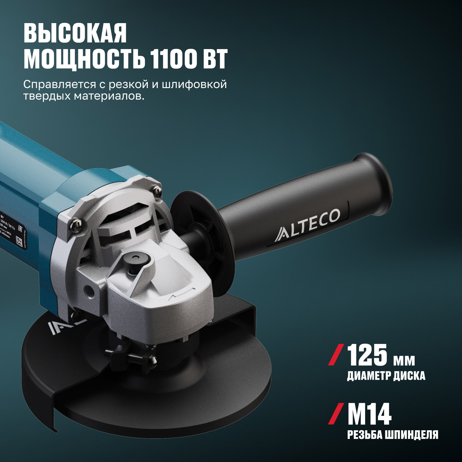 - Высокая мощность 1100 Вт — справляется с резкой и шлифовкой твердых материалов.
