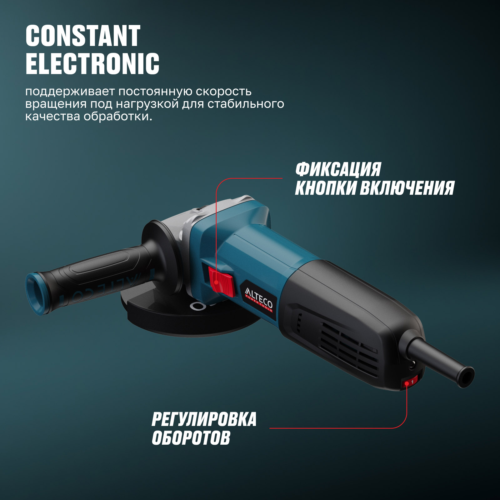 - Constant Electronic — поддерживает постоянную скорость вращения под нагрузкой для стабильного качества обработки.