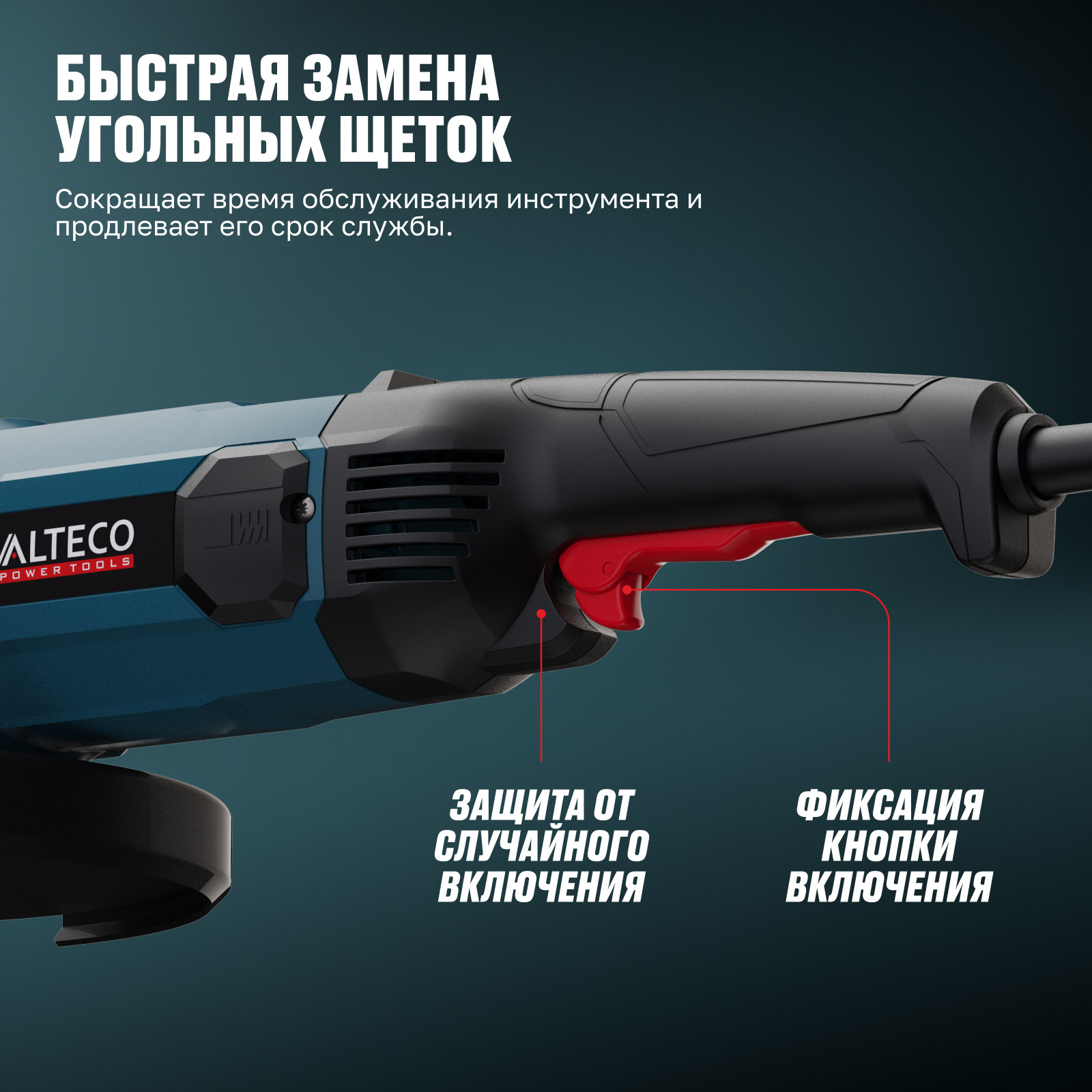 - Высокая мощность 2200 Вт — справляется с резкой и шлифовкой твёрдых материалов.