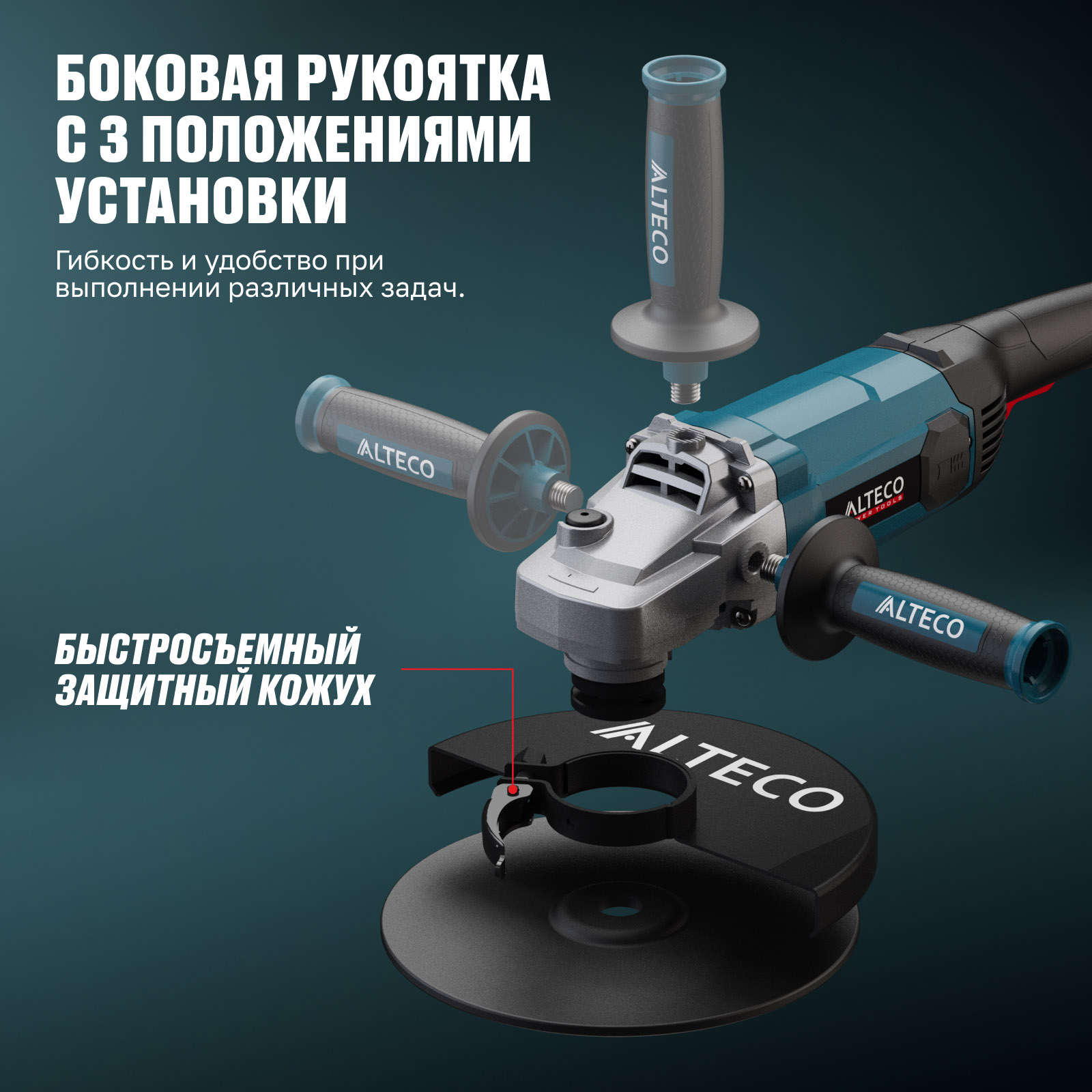 - Боковая рукоятка с 3 положениями установки — гибкость и удобство при выполнении различных задач.
