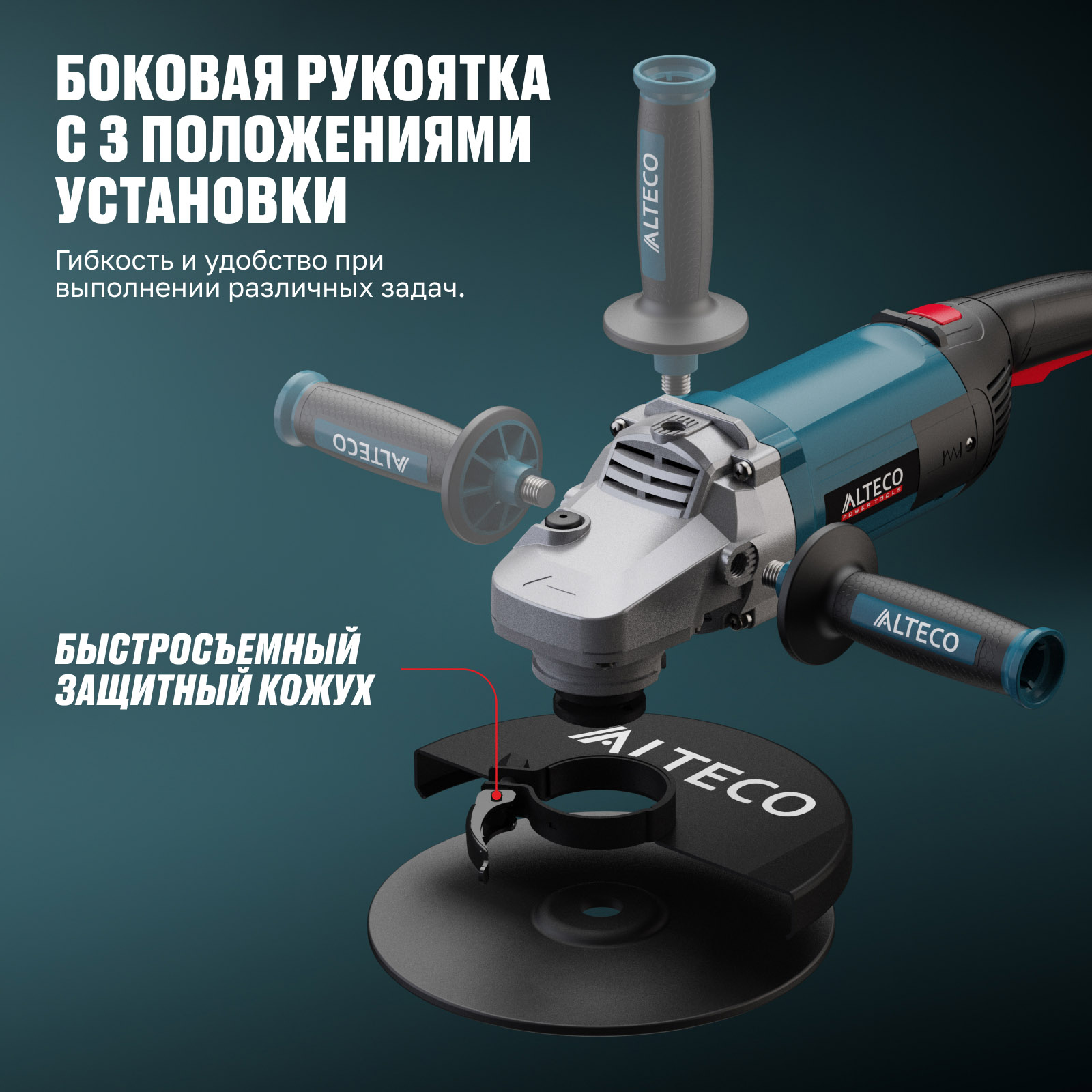- Поворотная основная рукоятка — обеспечивает удобство при резке и шлифовке под разными углами, снижает нагрузку на кисть и запястье.