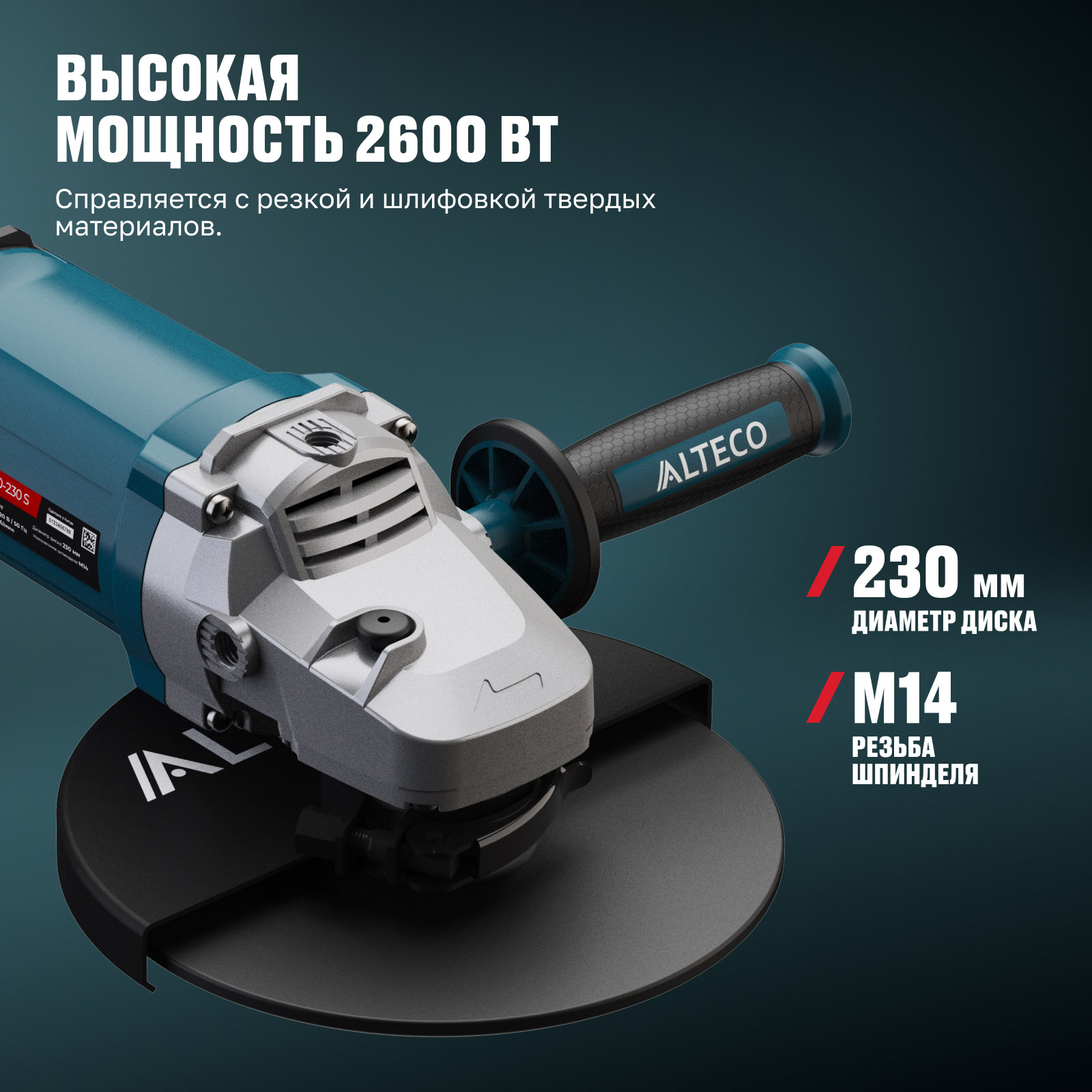 - Высокая мощность 2600 Вт — справляется с резкой и шлифовкой твёрдых материалов.