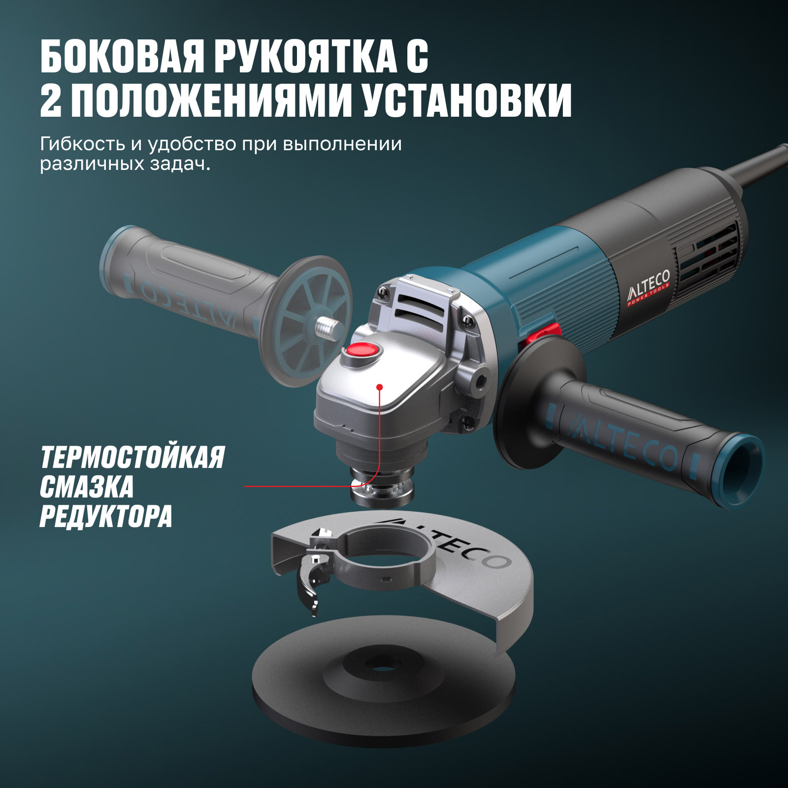 - Дополнительная рукоятка с 2 положениями установки — гибкость и удобство при выполнении различных задач.