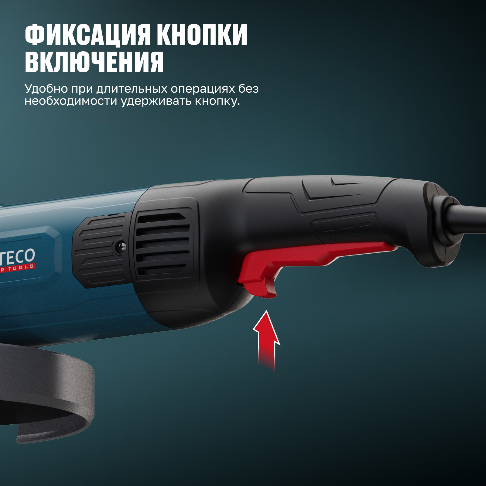 - Фиксация кнопки включения — удобно при длительных операциях без необходимости удерживать кнопку.