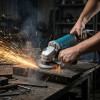 - Быстросъемный защитный кожух — надёжно защищает от искр и абразивных частиц, легко регулируется без инструмента.