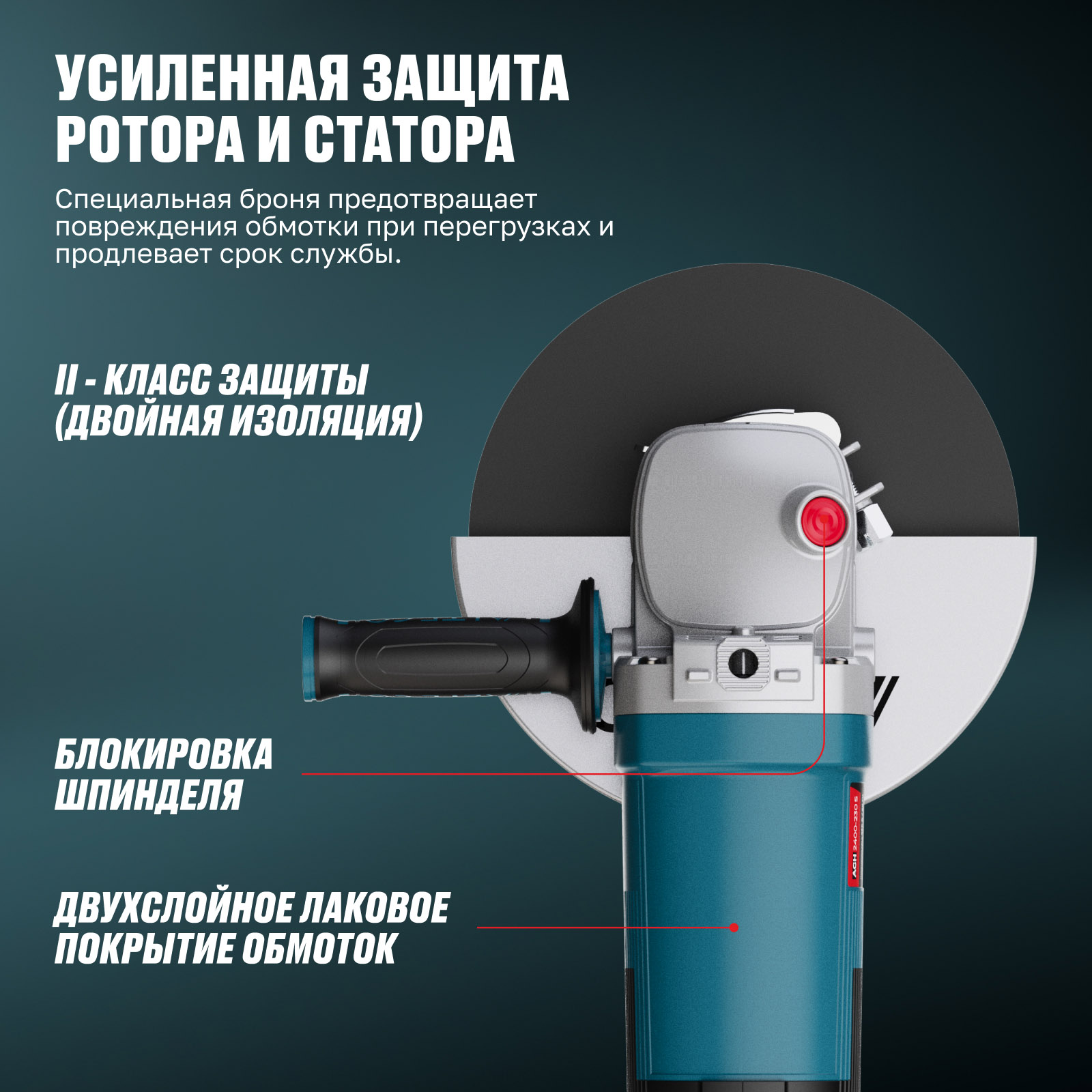 - Усиленная защита ротора и статора — специальная броня предотвращает повреждения обмотки при перегрузках и продлевает срок службы.